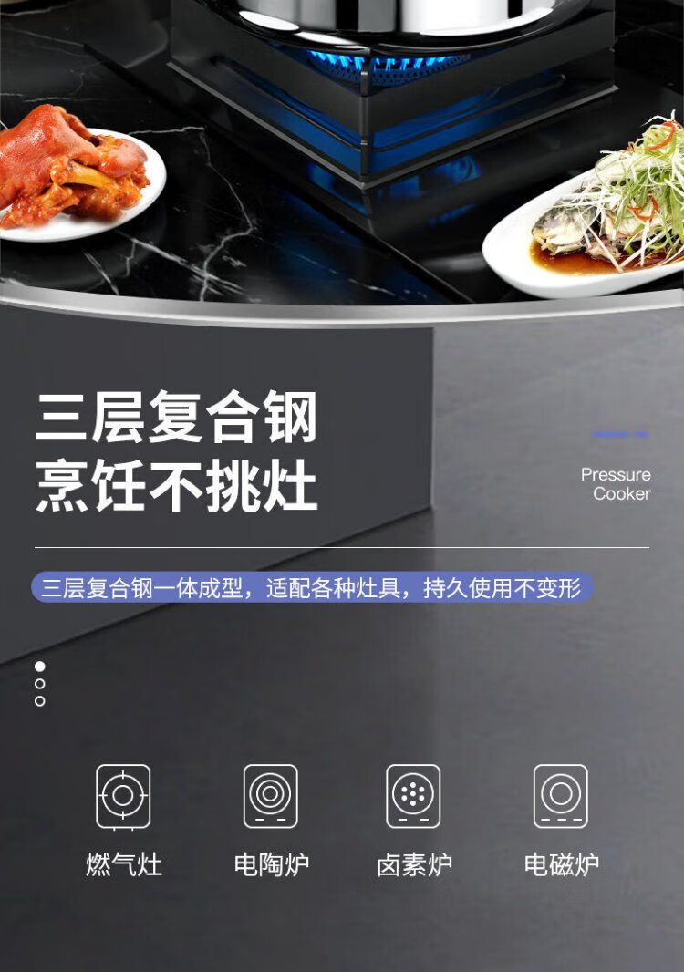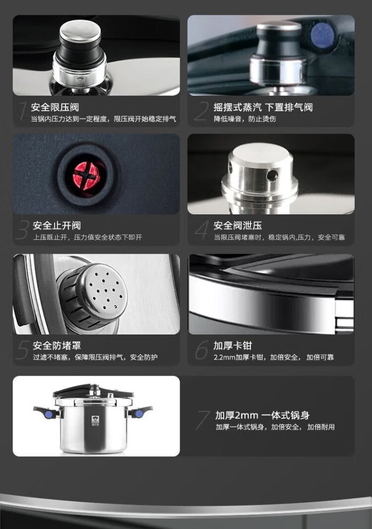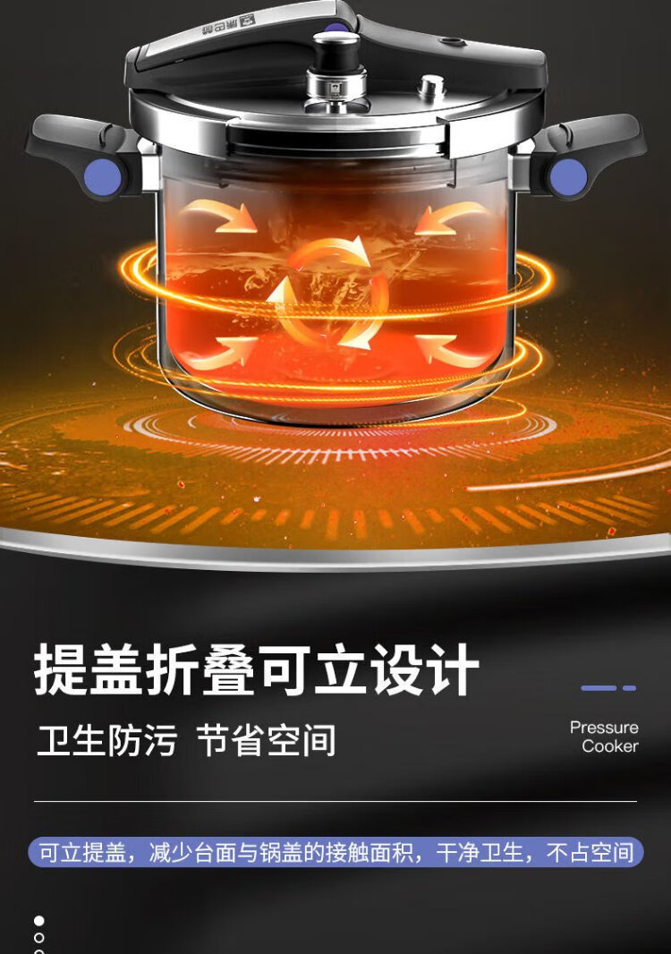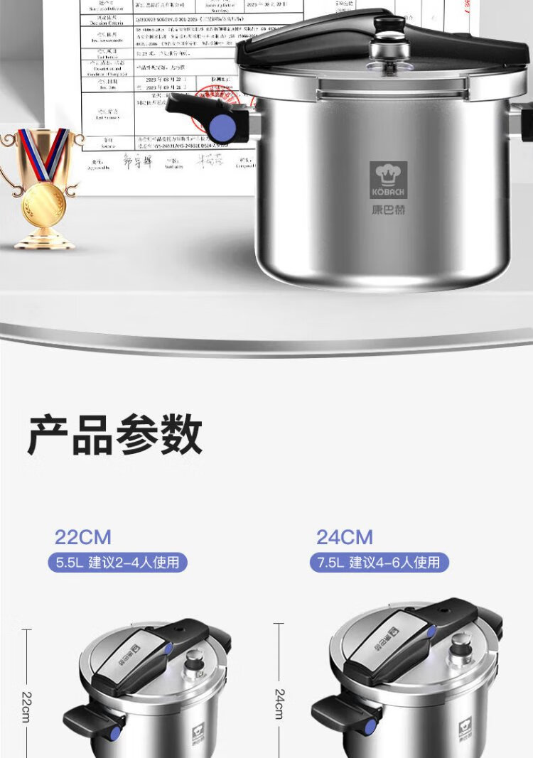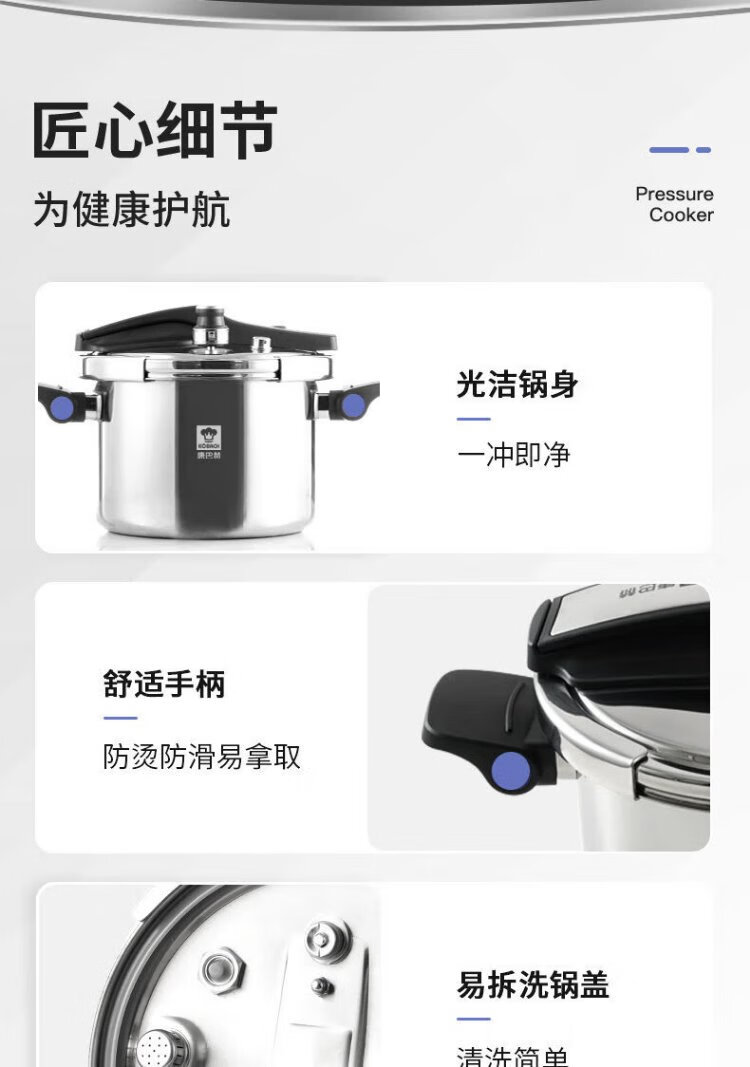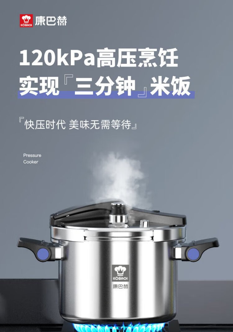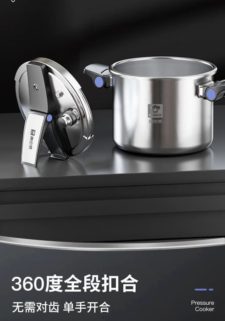 Konbach (KBH) German pressure cooker 304 stainless steel pressure cooker multiple explosion-proof folding upright pot lid available for household induction cookers