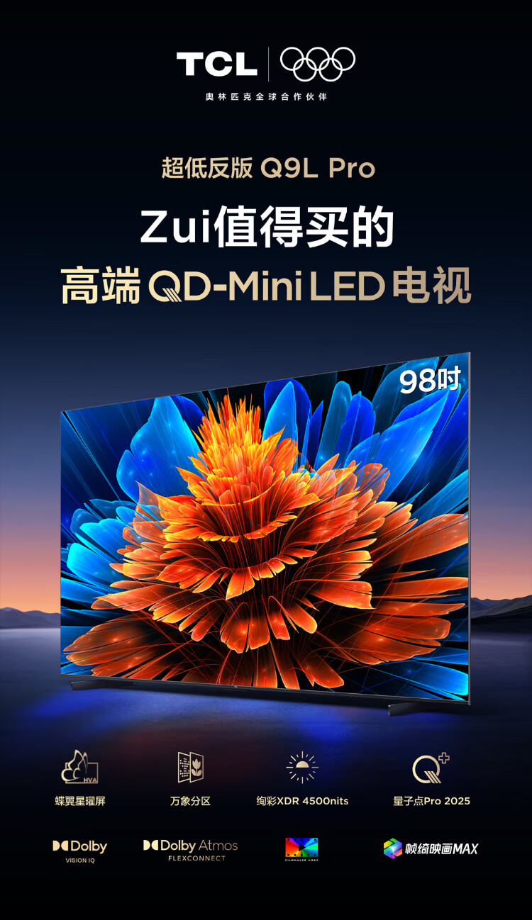 TCL TV 98Q9L Pro 98-inch QD-Mini LED Butterfly Star Screen Vientiane Partition Colorful XDR Ultra-thin 98/100-inch TV National Subsidy