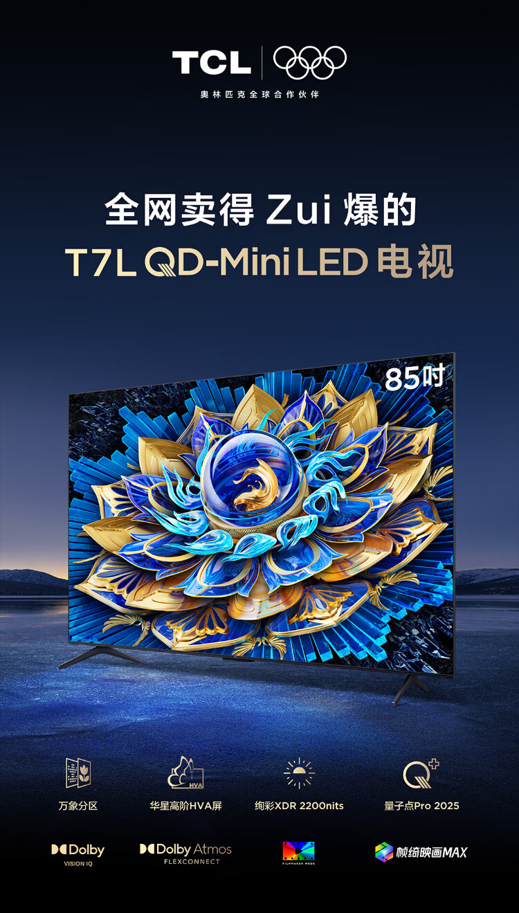 TCL TV 85T7L QD-Mini LED de 85 pulgadas Huaxing, pantalla HVA de gama alta, partición Vientiane, XDR2200nits colorido, subsidio estatal ultrafino