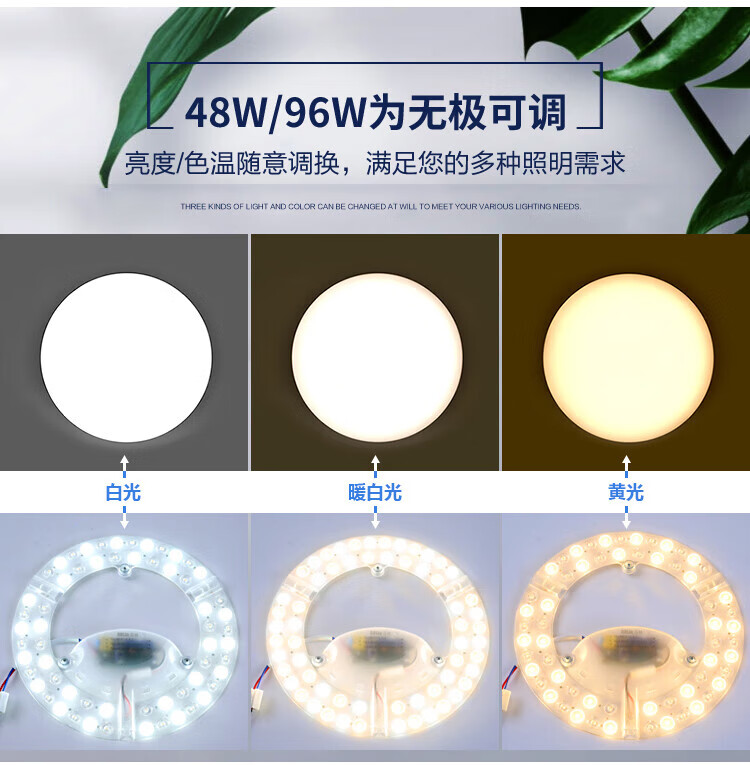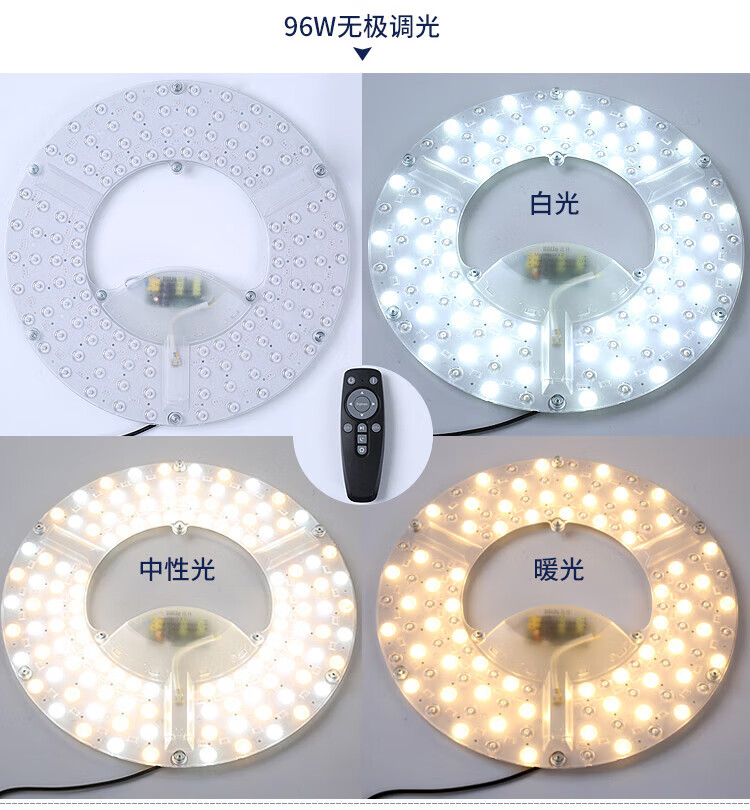 ROlin stepless dimming and color changing LED modification board living room ceiling lamp replacement wick light source module with remote control 96W (large quantity customization)