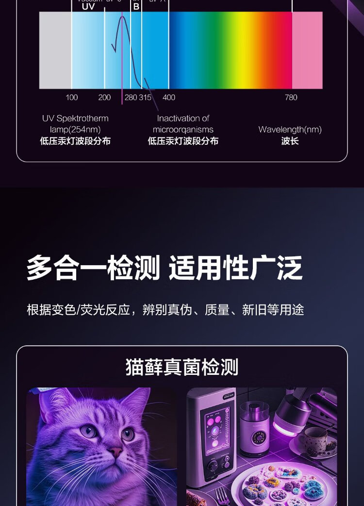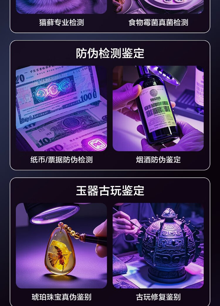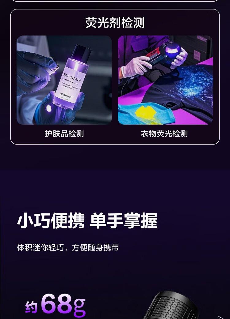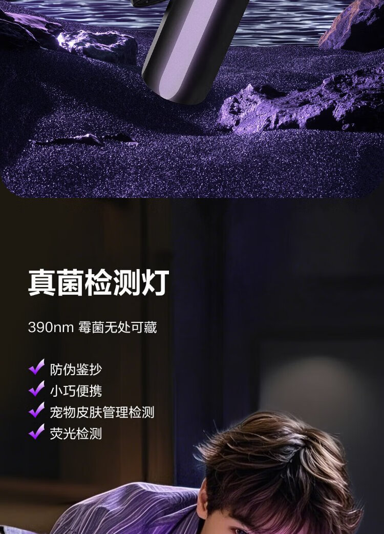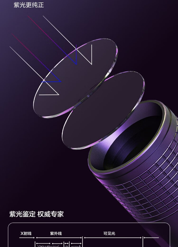 Deli Wood's lamp, purple light, fruit and vegetable identification, cat moss, jade, antiques, 390 tobacco detection, anti-counterfeiting money detection pen, flashlight