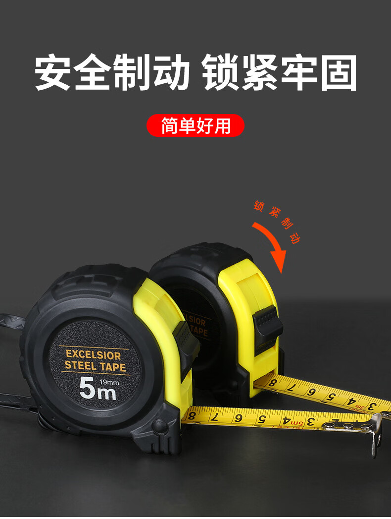 DITRON rubber-coated tape measure 5 meters metric scale ruler thickened anti-fall industrial grade steel tape measure 5 meters * 19MM