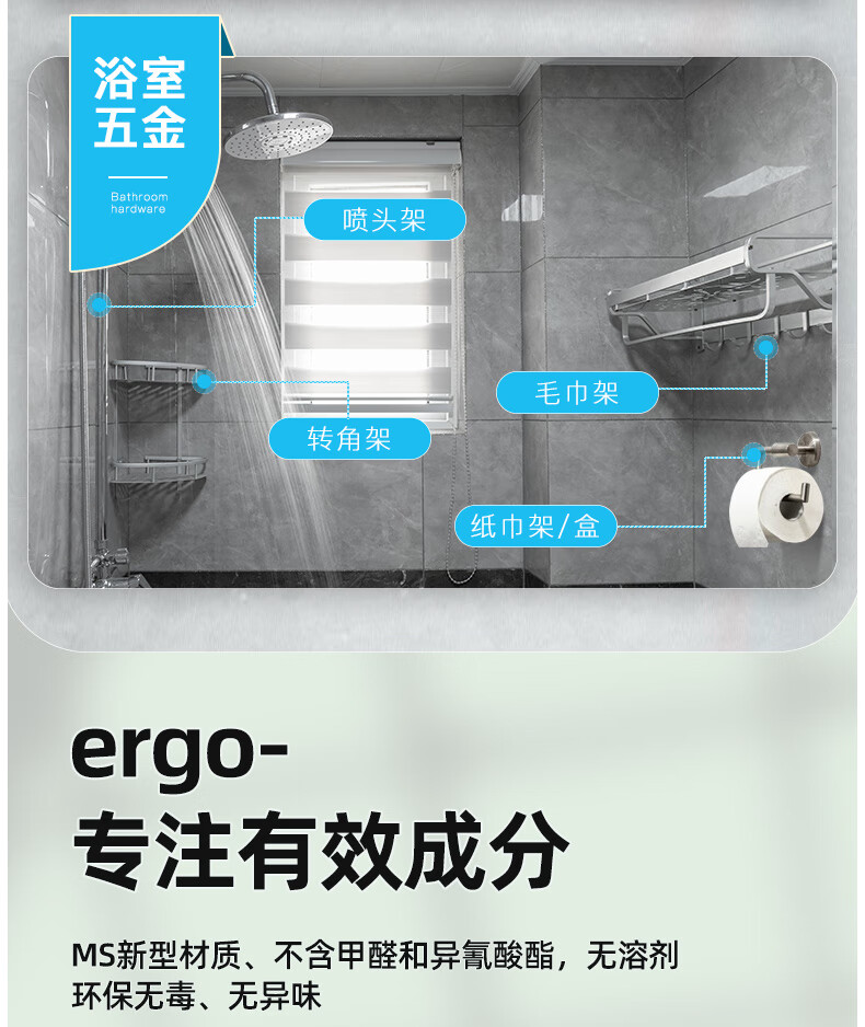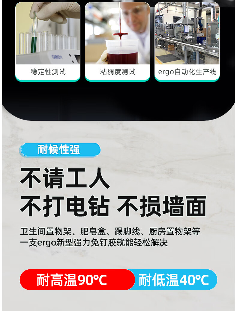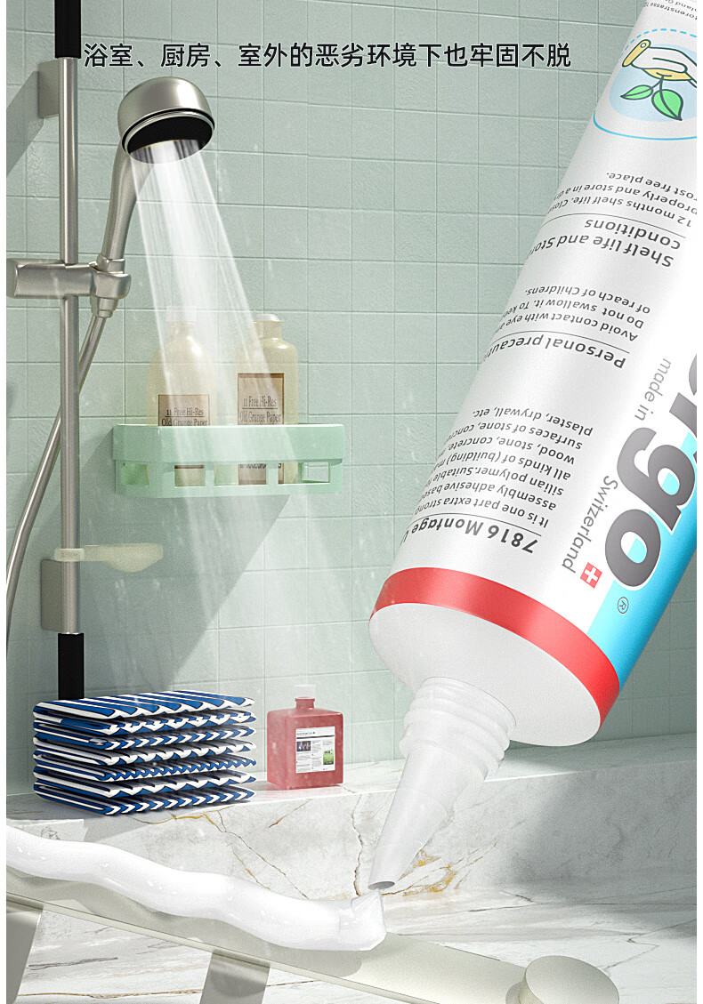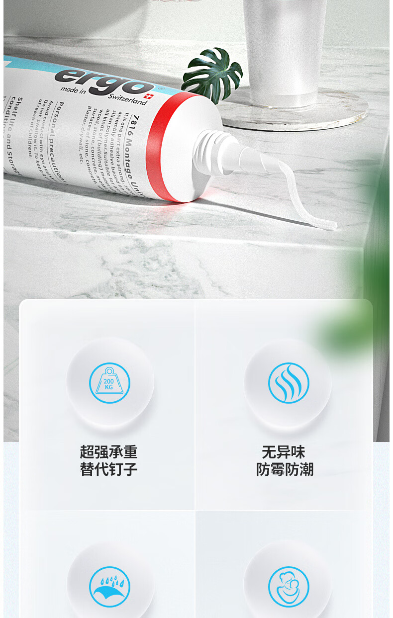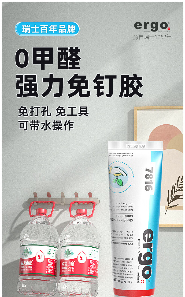 Ergo7816 high viscosity nail-free glue for wall sticking, metal shelf hook, mirror, tile skirting line, universal sealing, multi-functional waterproof household glue, punch-free strong glue