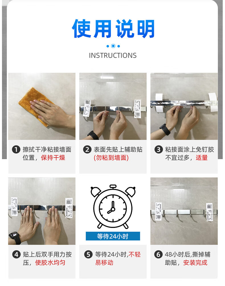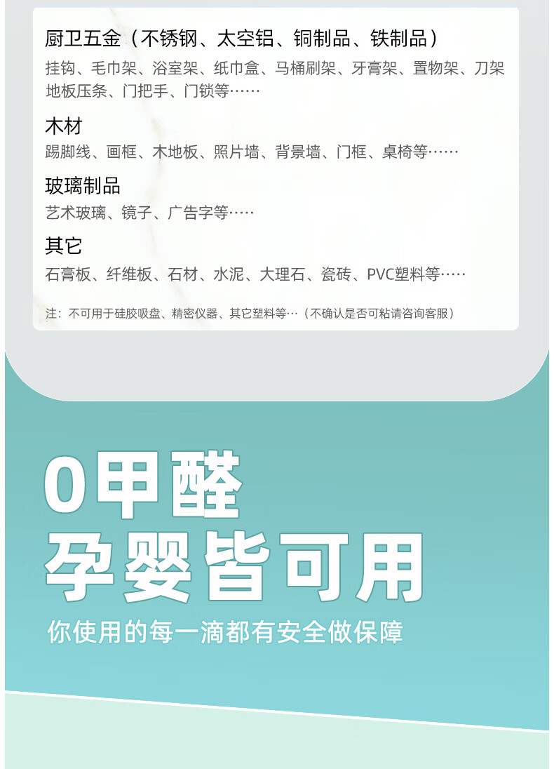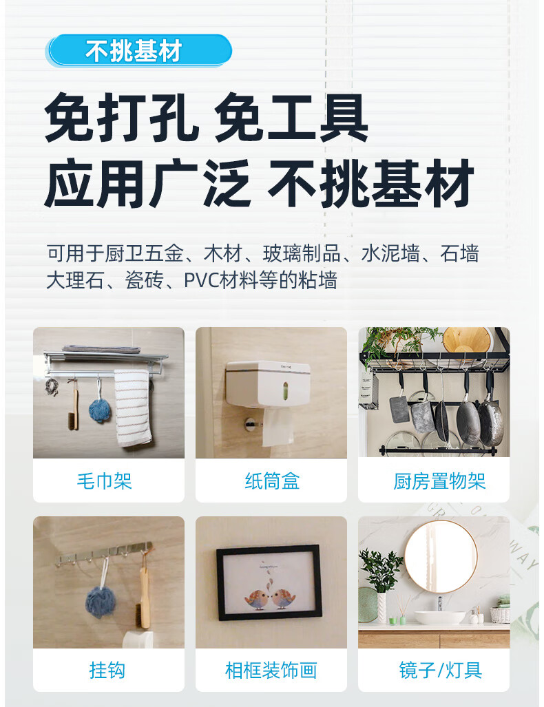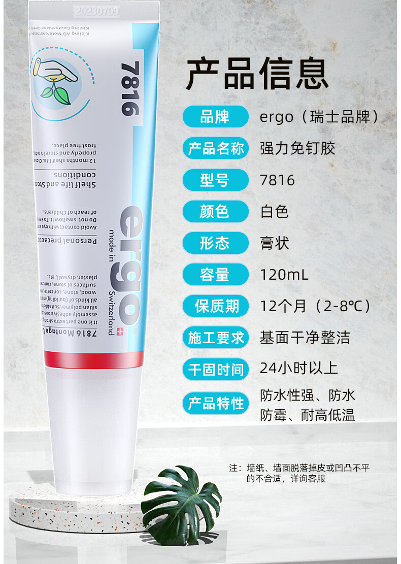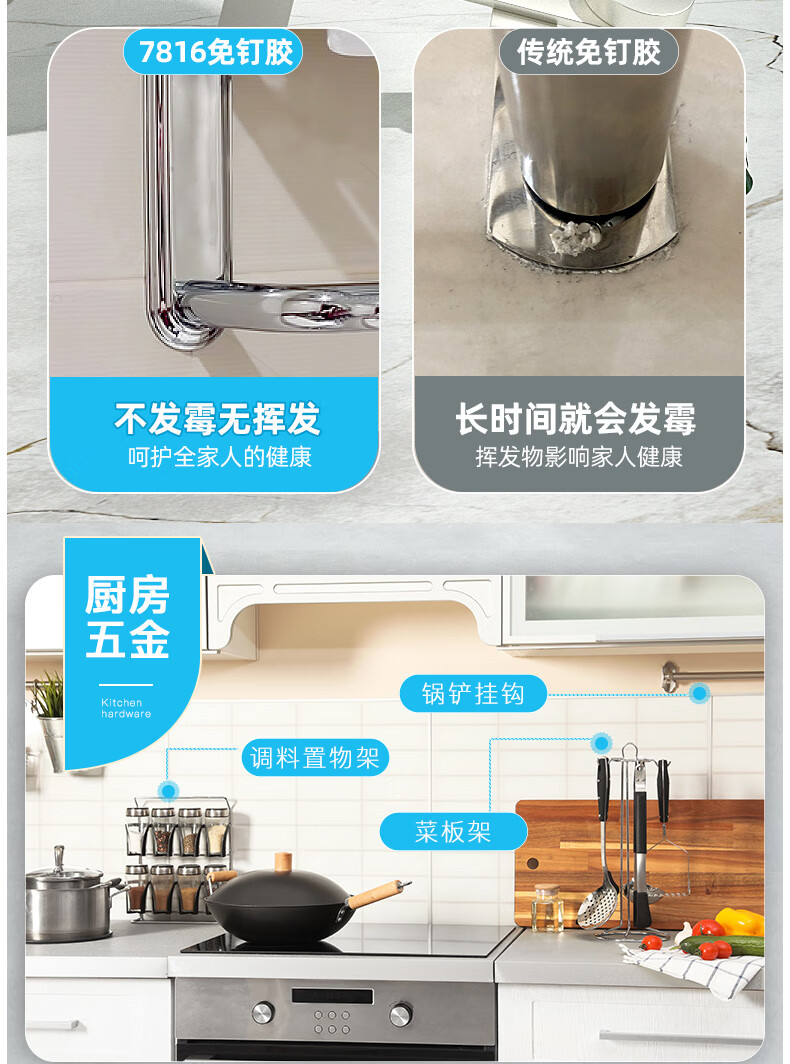 Ergo7816 high viscosity nail-free glue for wall sticking, metal shelf hook, mirror, tile skirting line, universal sealing, multi-functional waterproof household glue, punch-free strong glue