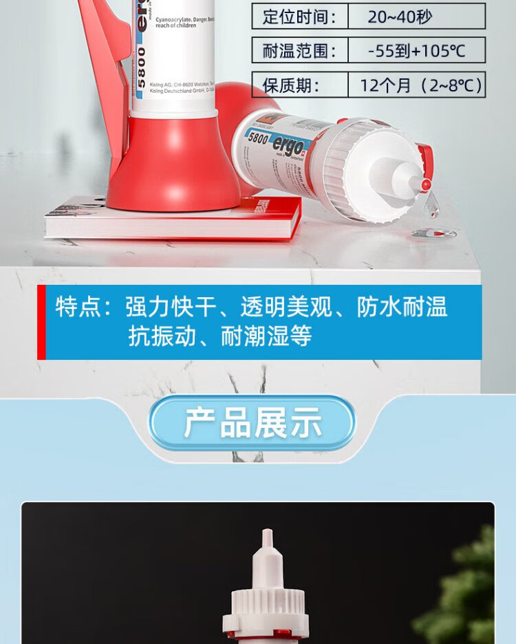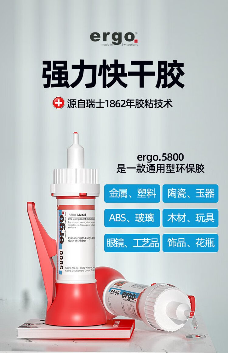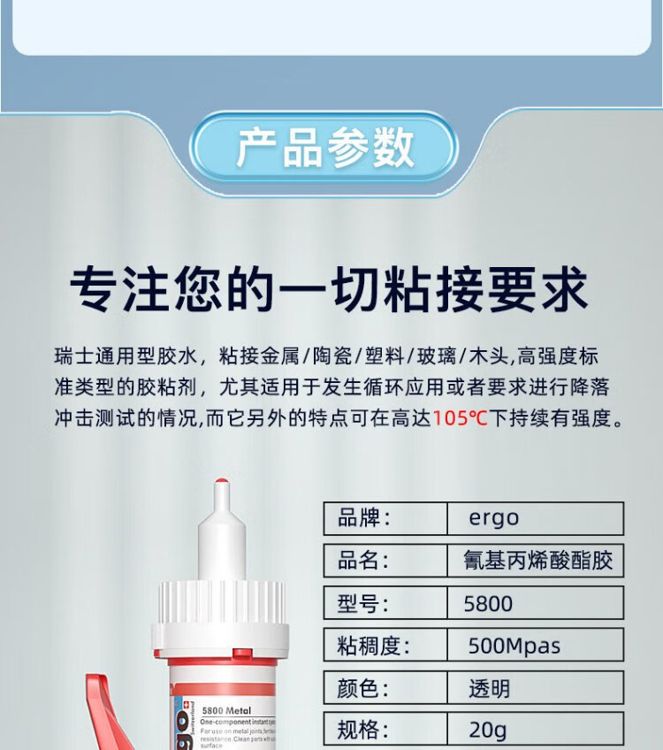 Ergo5800 (with handle) strong glue, universal glue, metal, iron, ceramic, plastic, acrylic, high temperature resistant, transparent, quick-drying, oily original glue 502 genuine