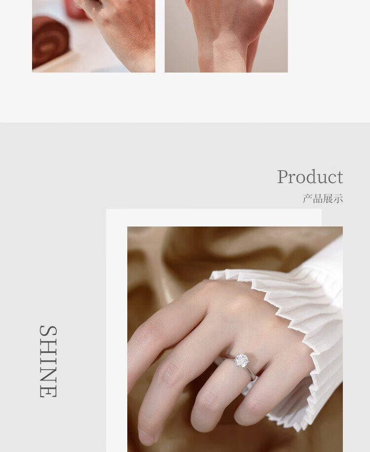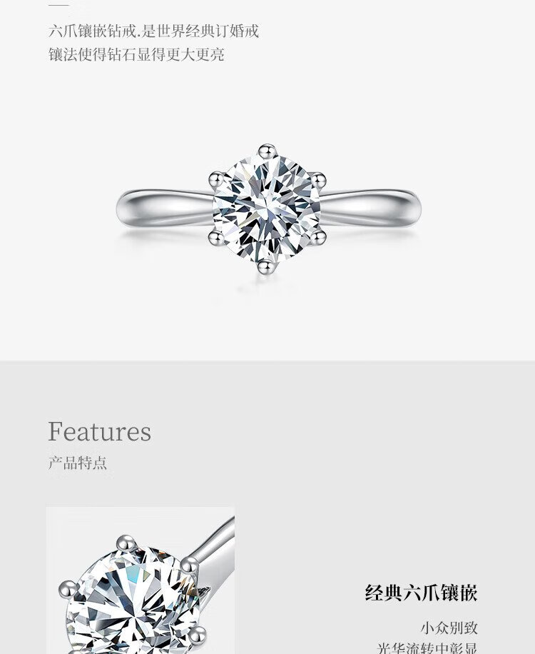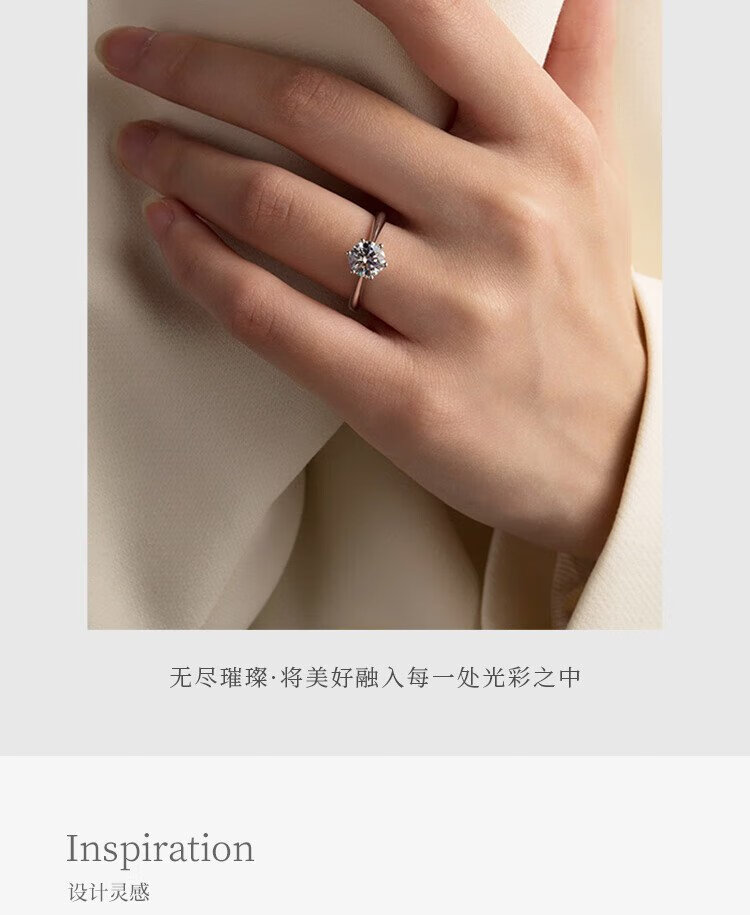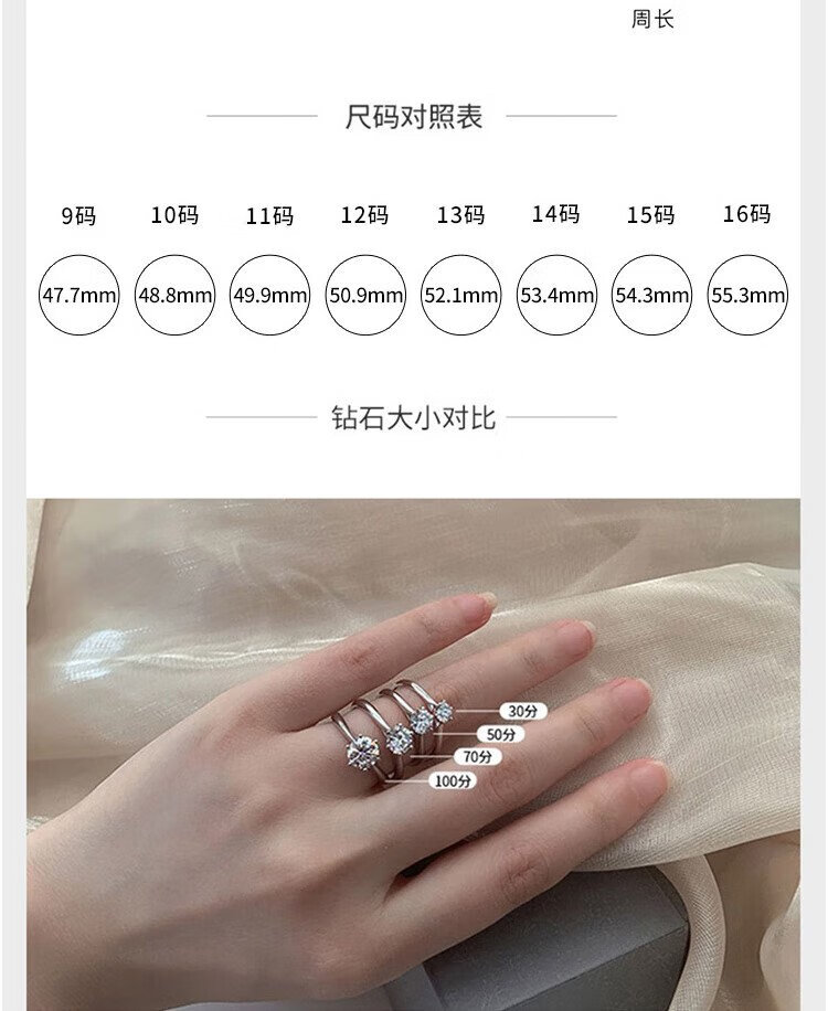 Mooleeca classic six-claw platinum cultured diamond women's ring 50 points DE color VS wedding gift for girlfriend and wife No. 11
