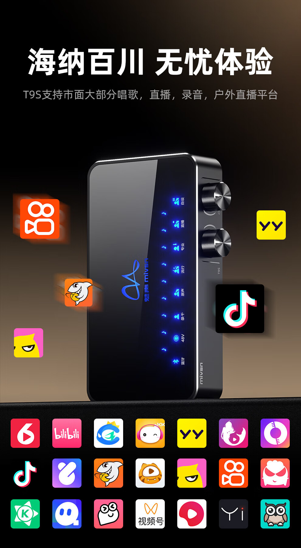 Meisheng T9S sound card live broadcast equipment full set of karaoke special set external mobile phone computer microphone wireless microphone Douyin singing recording dubbing game outdoor anchor professional