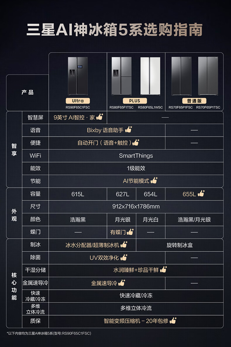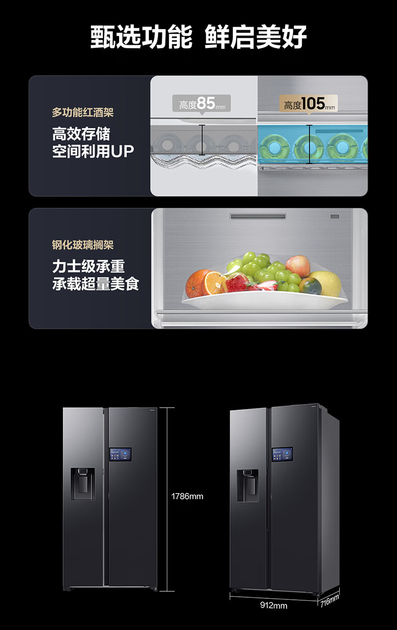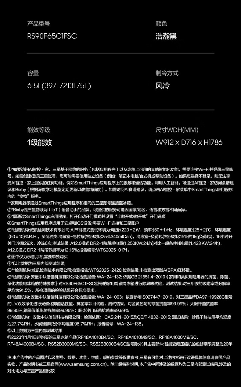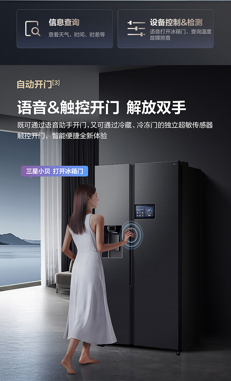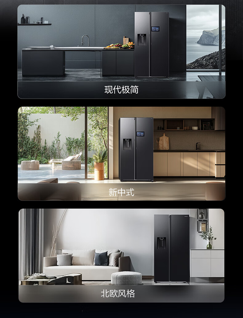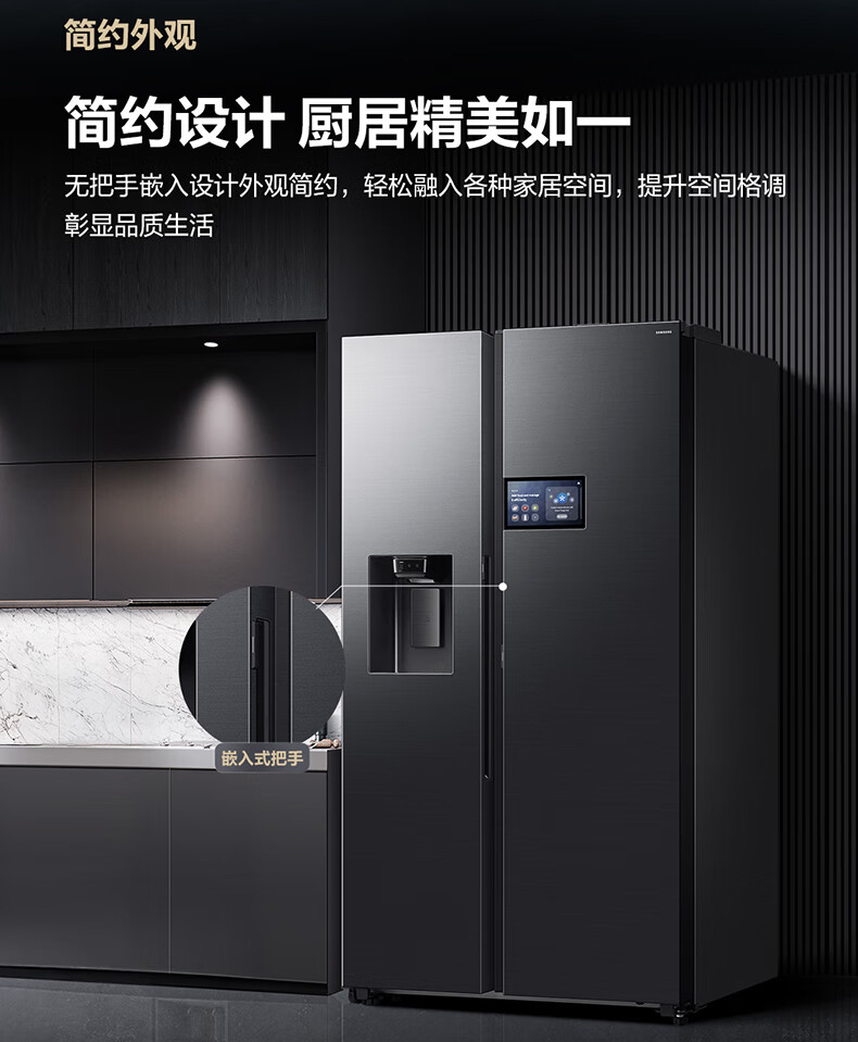 Samsung (SAMSUNG) AI Refrigerator 5 Series Ultra Model 615L Side-by-side Door Refrigerator New Super Large Capacity Automatic Ice Making Automatic Door Opening Black RS90F65C1FSC National Subsidy