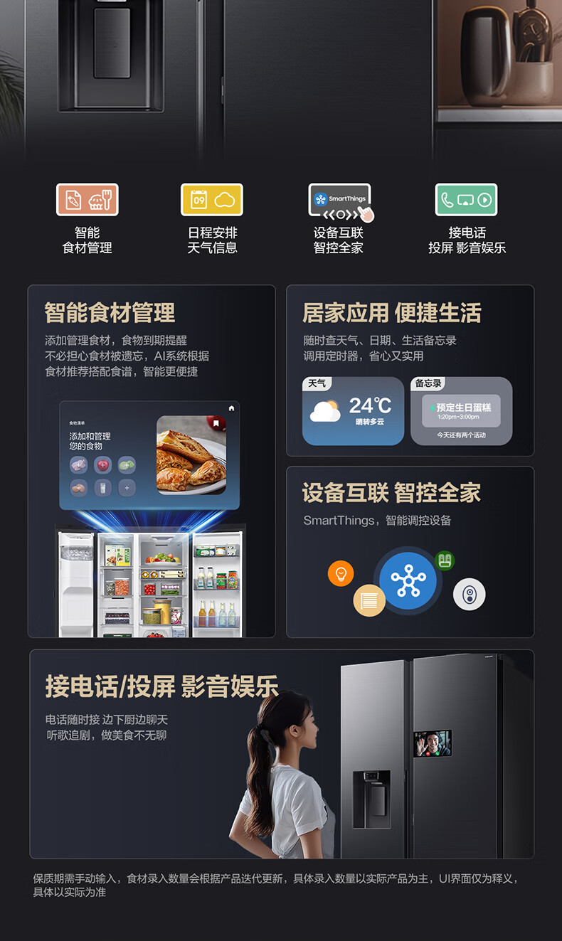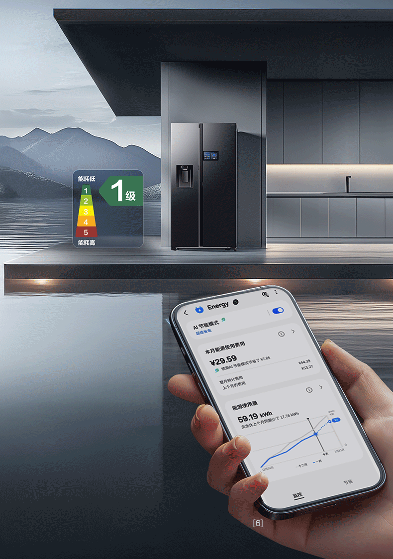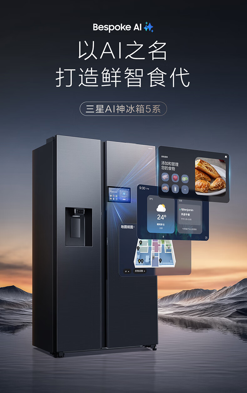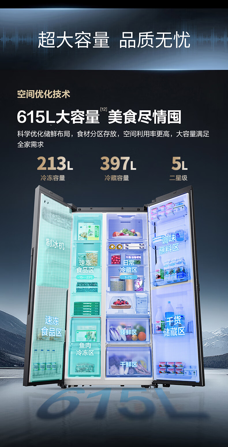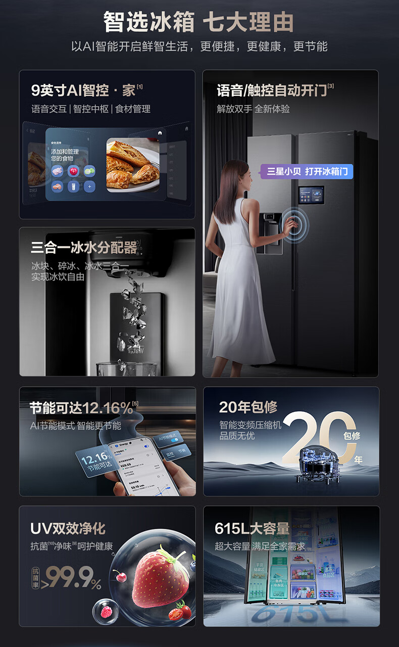 Samsung (SAMSUNG) AI Refrigerator 5 Series Ultra Model 615L Side-by-side Door Refrigerator New Super Large Capacity Automatic Ice Making Automatic Door Opening Black RS90F65C1FSC National Subsidy