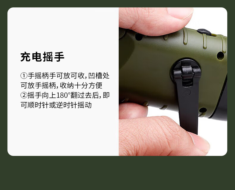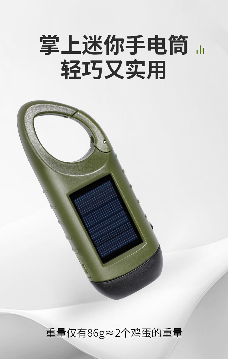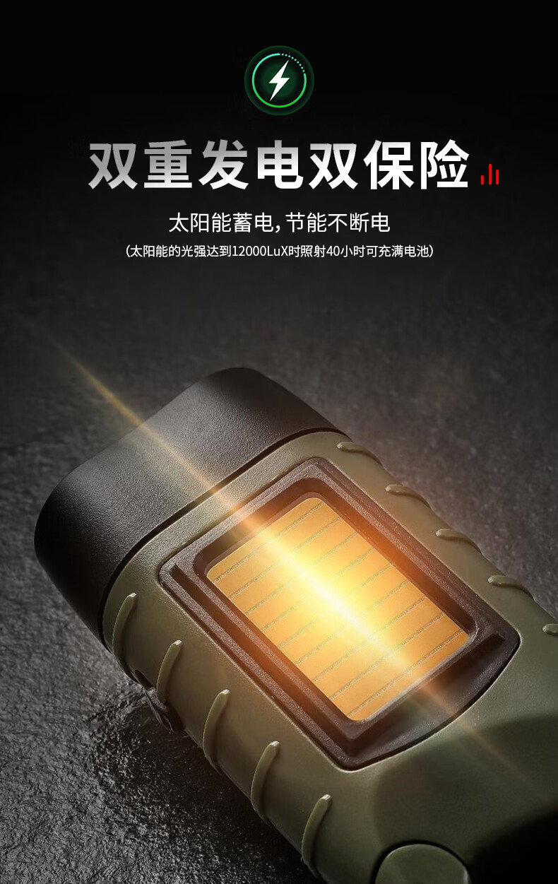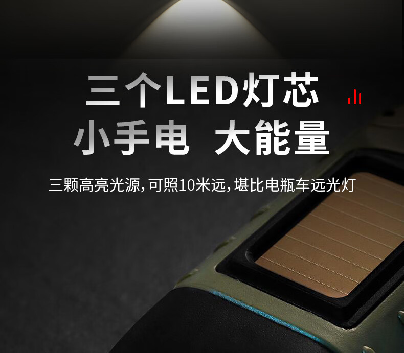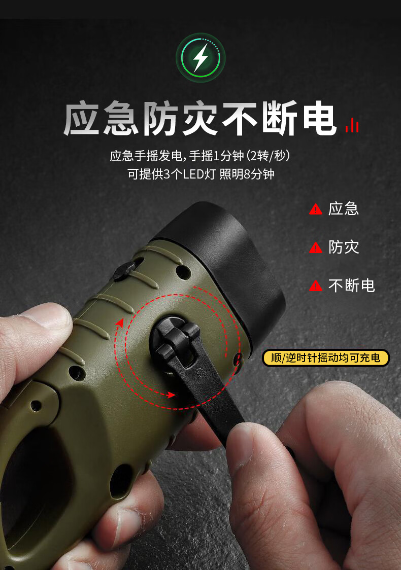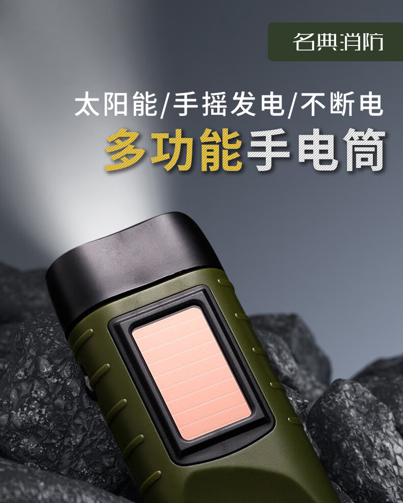 Mingdian Fire Protection Solar Hand-Cranked Flashlight LED High-Bright Light Source Long Range Compact and Portable Outdoor Emergency Disaster Prevention Disaster Relief and Escape Multi-Function Solar/Hand-Crank Charging