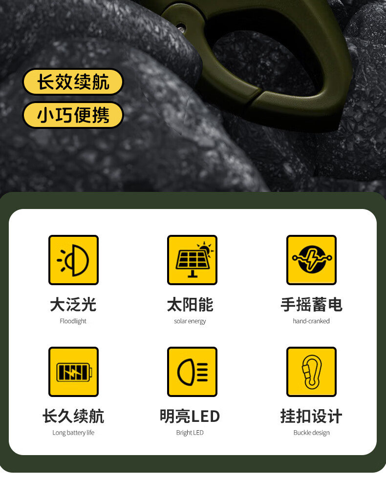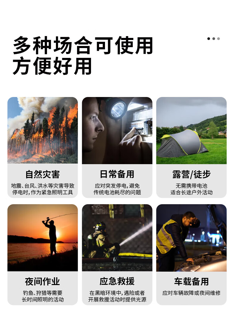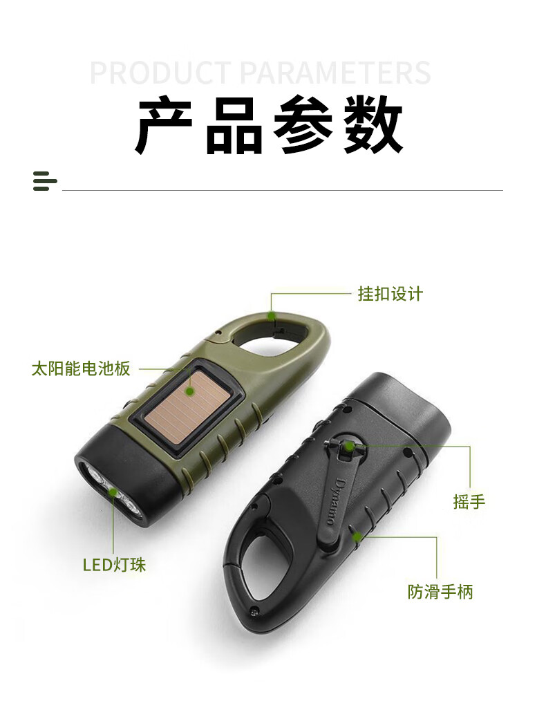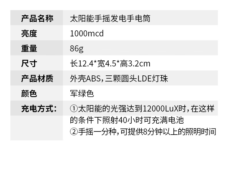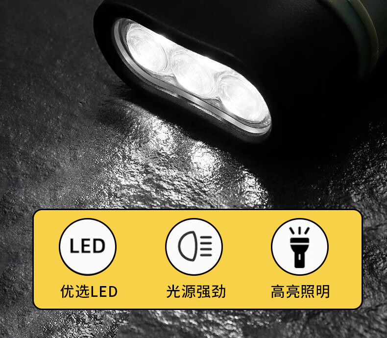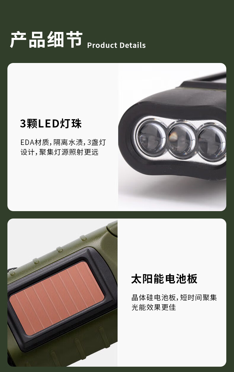 Mingdian Fire Protection Solar Hand-Cranked Flashlight LED High-Bright Light Source Long Range Compact and Portable Outdoor Emergency Disaster Prevention Disaster Relief and Escape Multi-Function Solar/Hand-Crank Charging