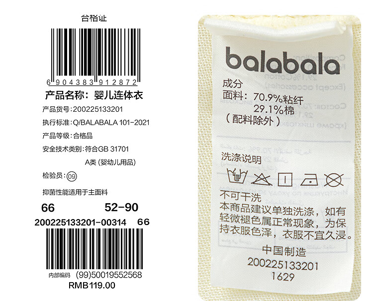 Balabala shopping mall same style newborn onesie baby pajamas summer wear comfortable