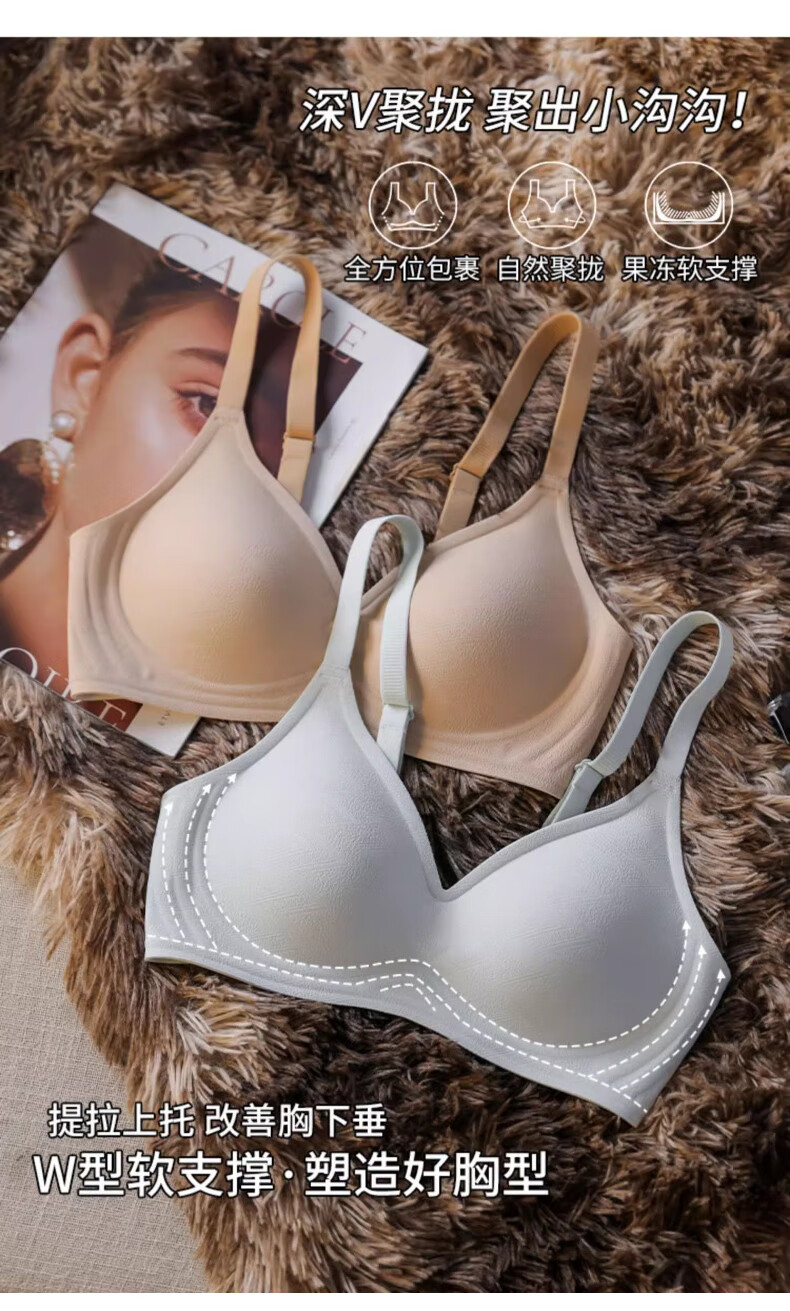 Ancient and modern (GUJIN) soft support small breast push-up underwear women's pull-up bra anti-sagging seamless wire-free sexy bra champagne M