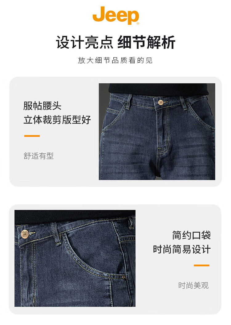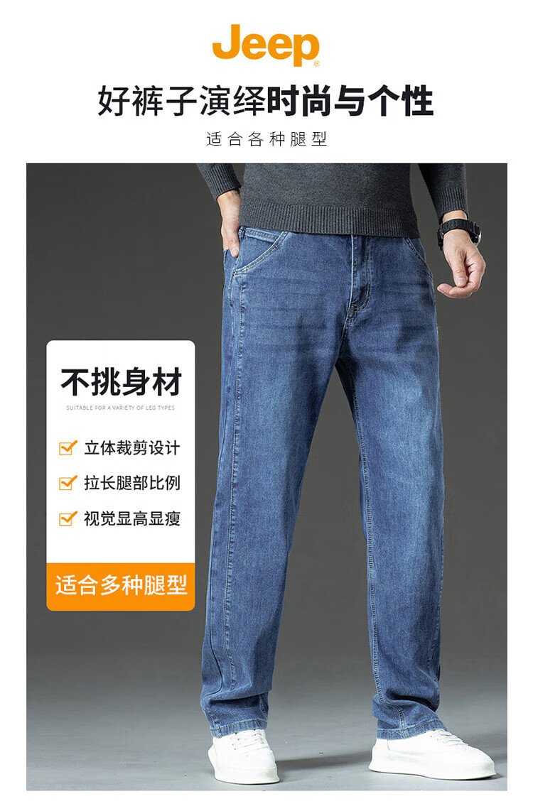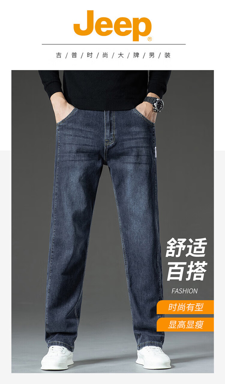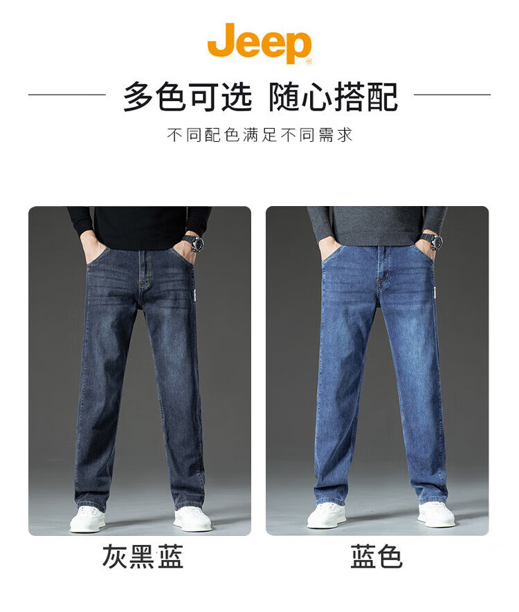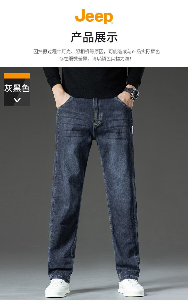 JEEP jeans men's autumn and winter loose straight casual pants men's trendy and versatile men's pants gray black blue 33