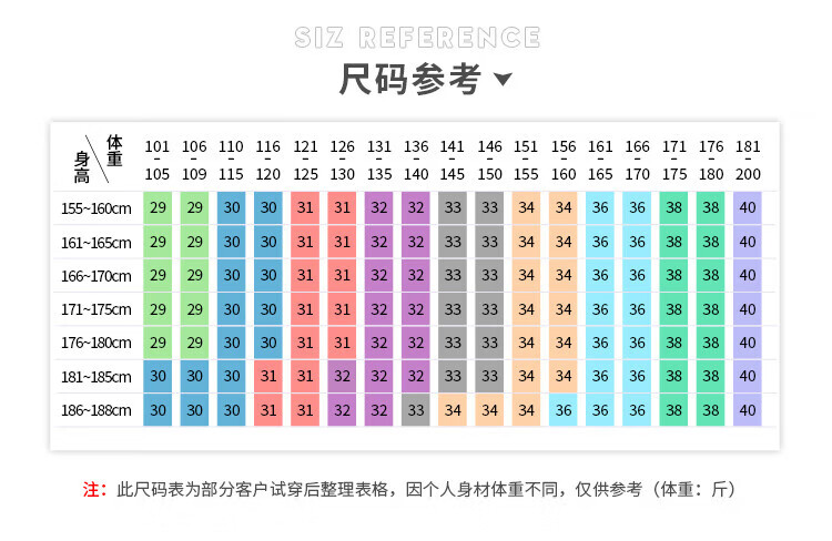 USA(inch) 28-30 30-32 32-34 34-38 38-42