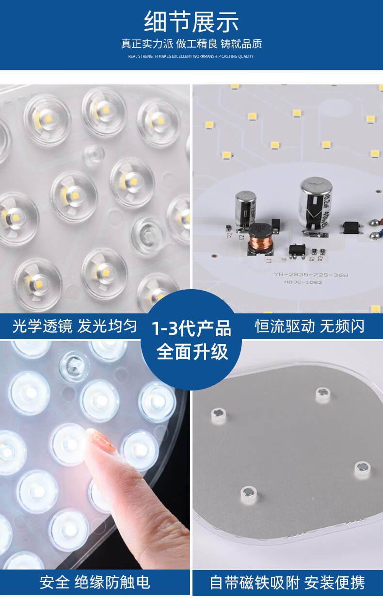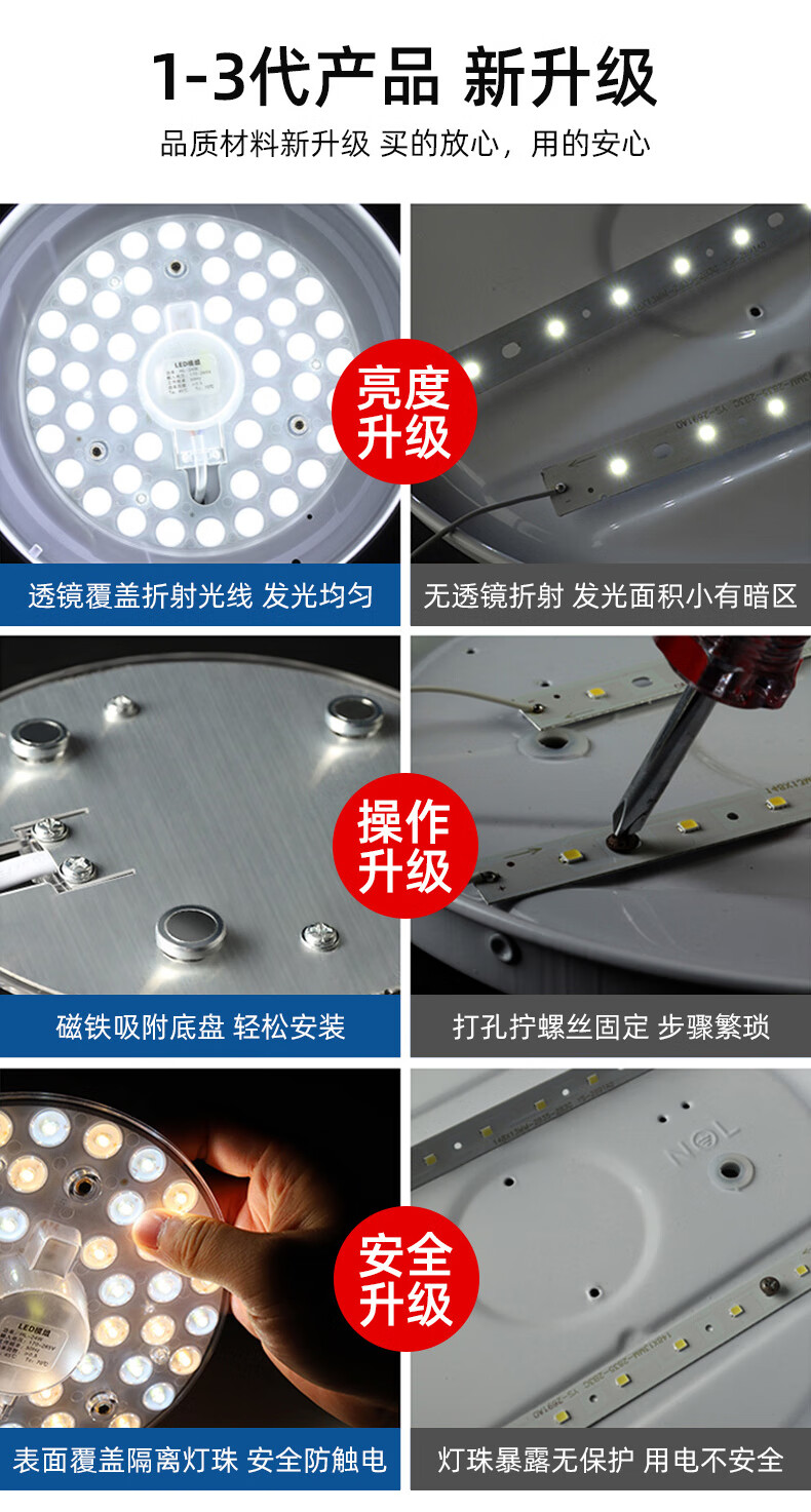Jinggong LED ceiling lamp wick modified light panel, three-tone lighting, circular energy-saving light source module, no punching, magnet adsorption, 24W three-tone lighting