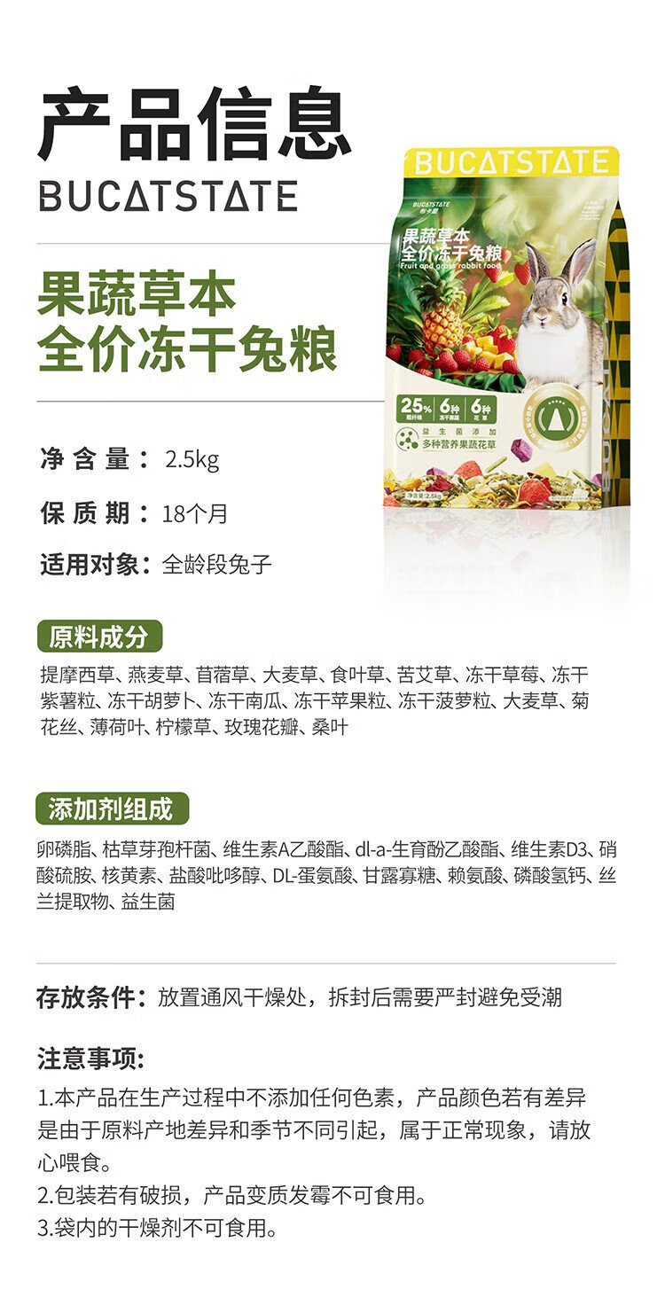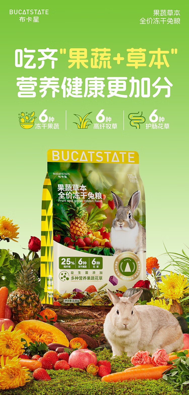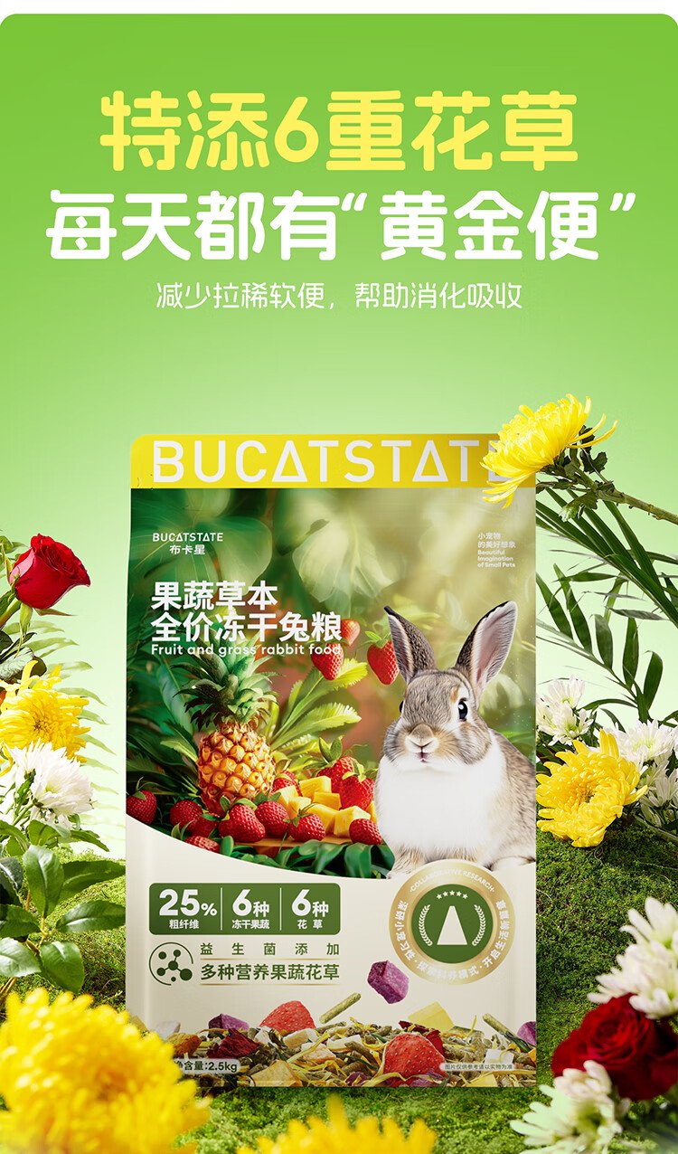 Bucstar fruit and vegetable herbs full price freeze-dried rabbit food baby rabbit adult rabbit lop-eared rabbit small pet main food feed 2.5kg