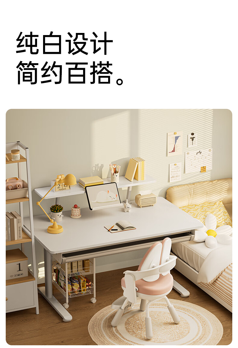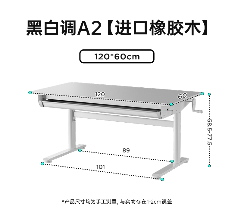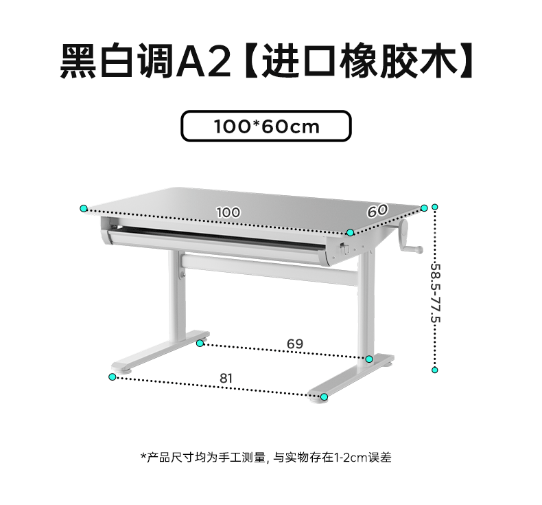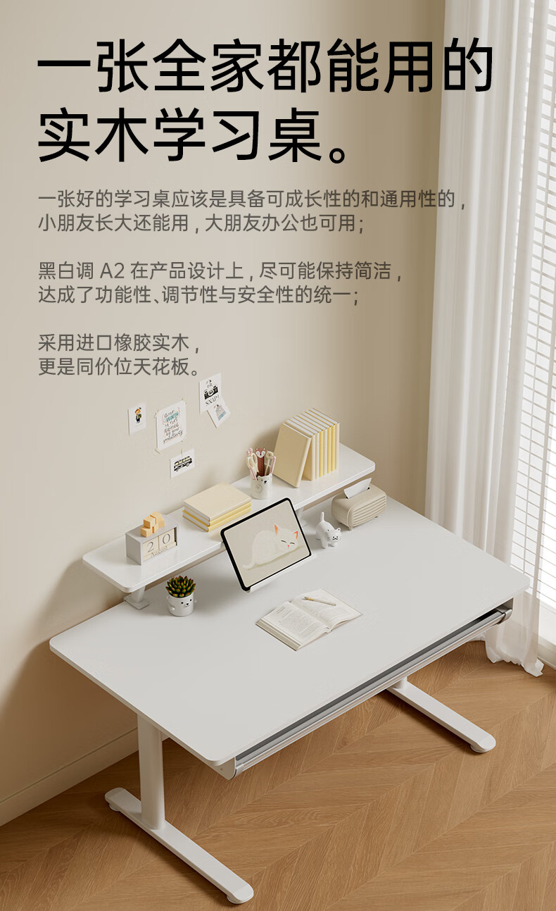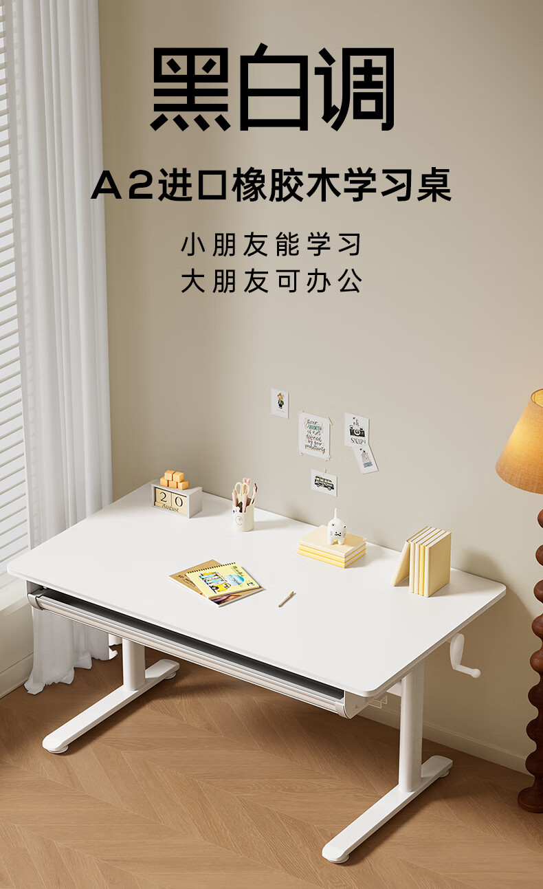 Black and white children's A2 study table, children's table and chair, solid wood lift table, writing table, computer table, imported rubber wood 1.2m