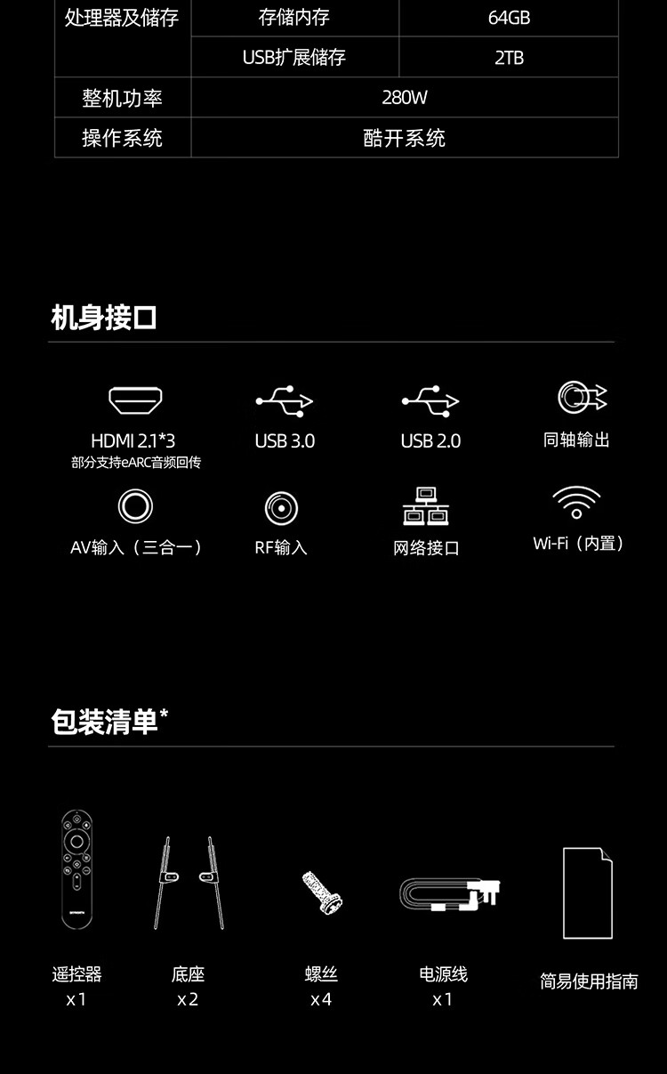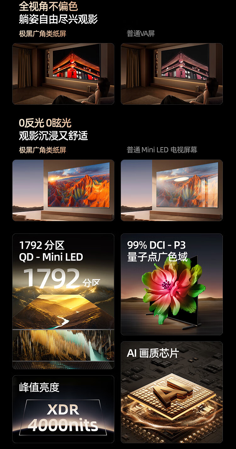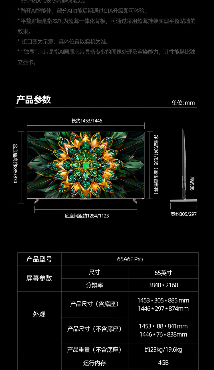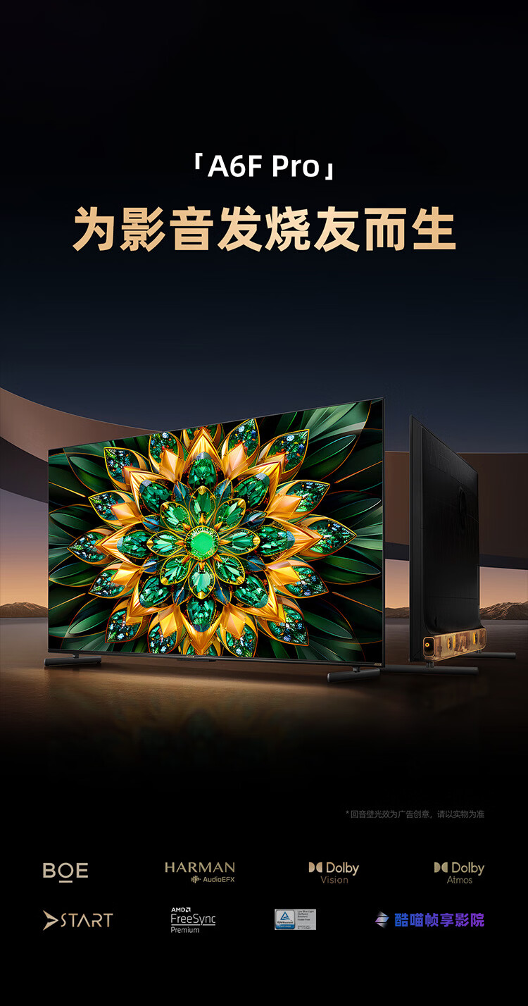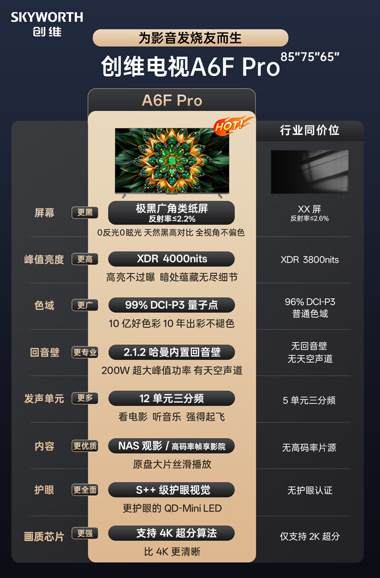 Skyworth TV 65A6F Pro 65-inch smart flat-panel TV 1792 partition QD-Mini LED echo wall LCD game 65-inch state subsidy 20% A6E+