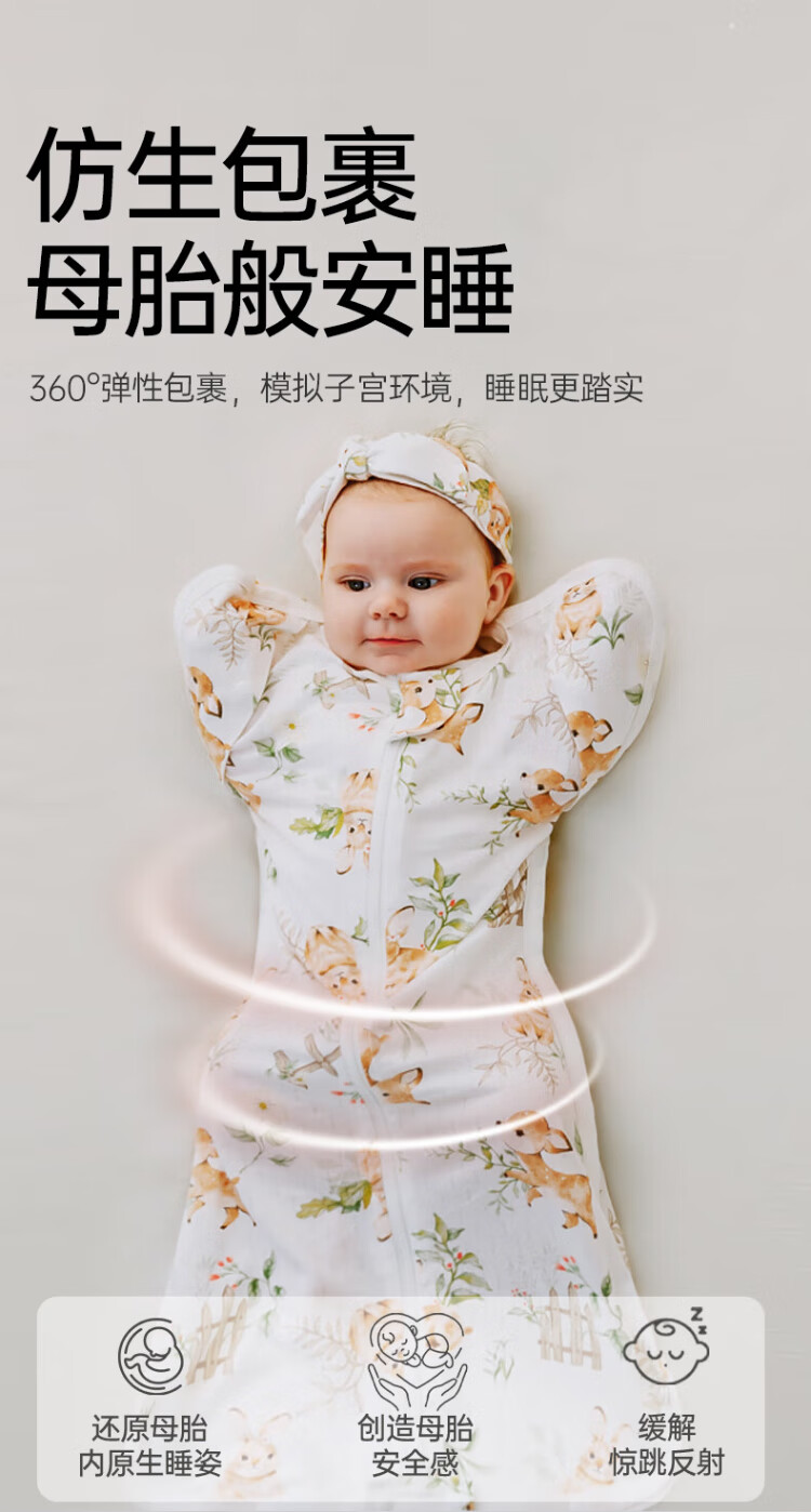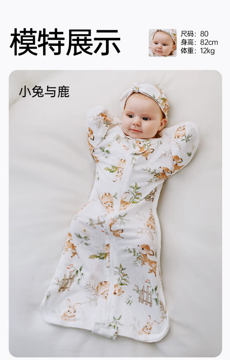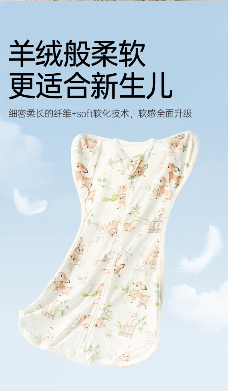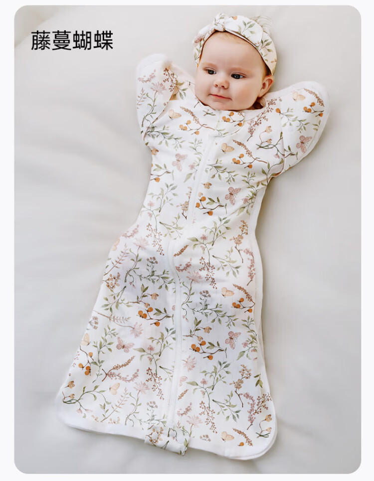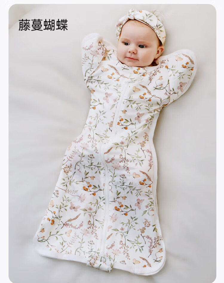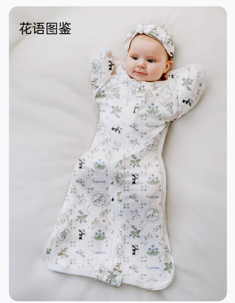 OUYUN Bamboo Cotton Baby Sleeping Bag Surrender-style Anti-jump Sleeping Bag Spring and Autumn Swaddle Cover Flower Language Illustrated Book 65*26