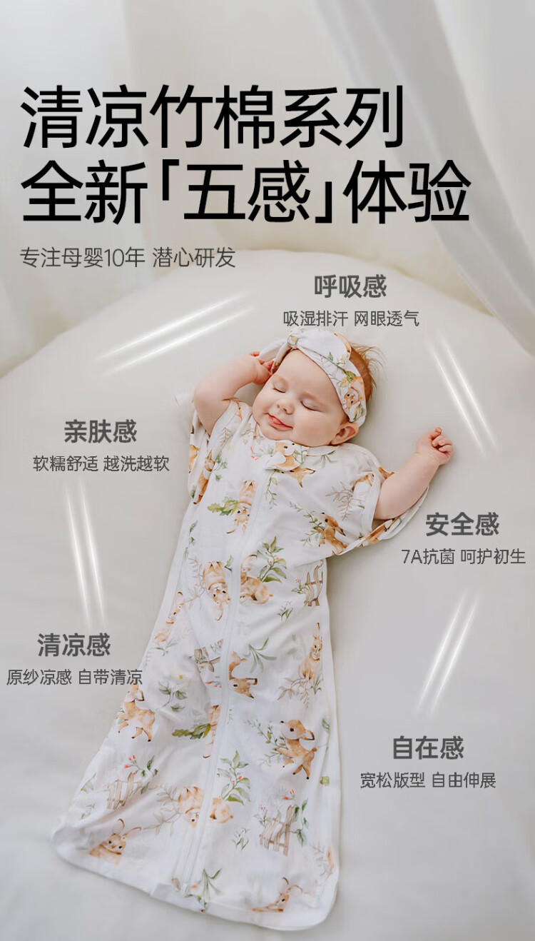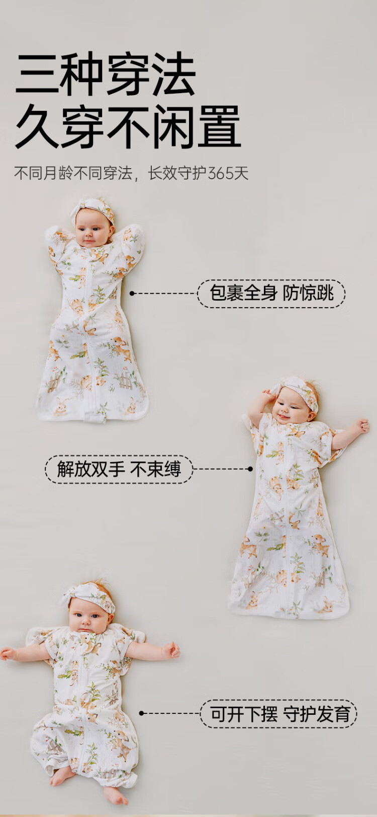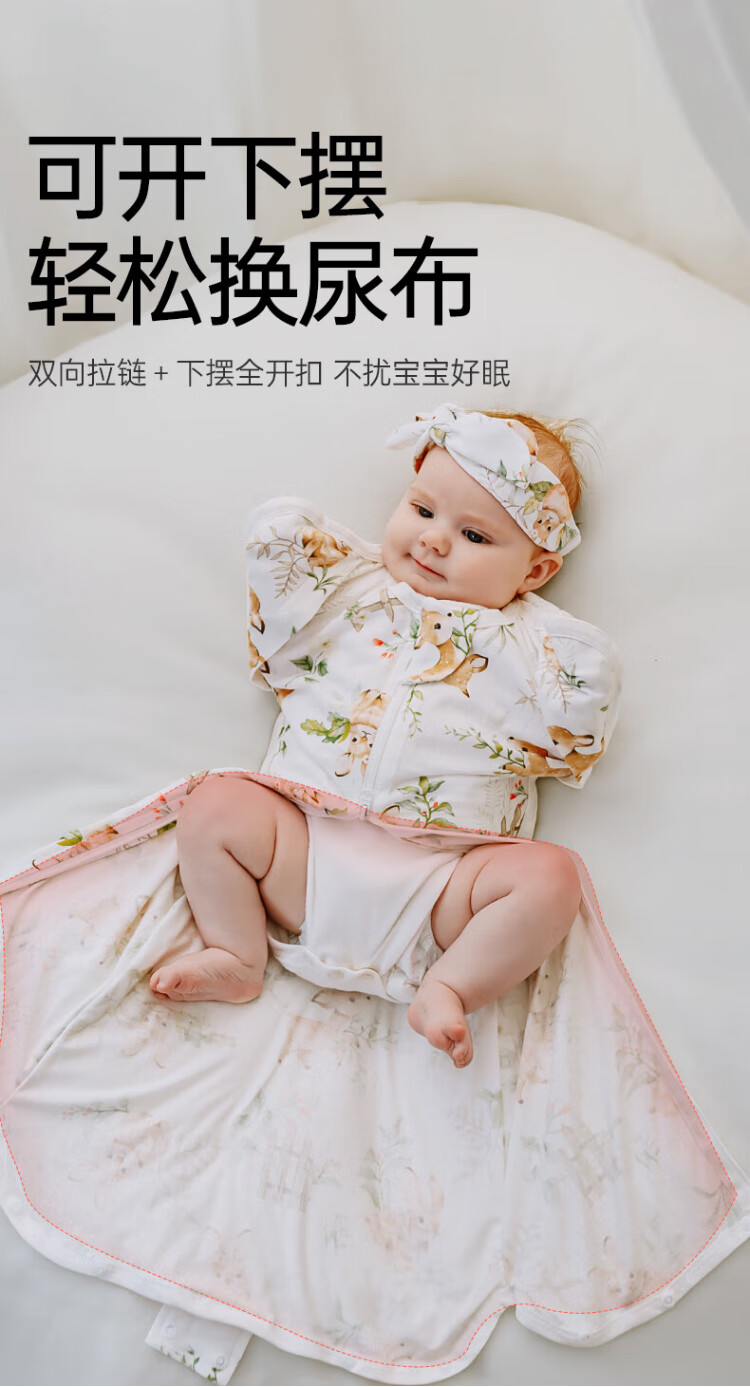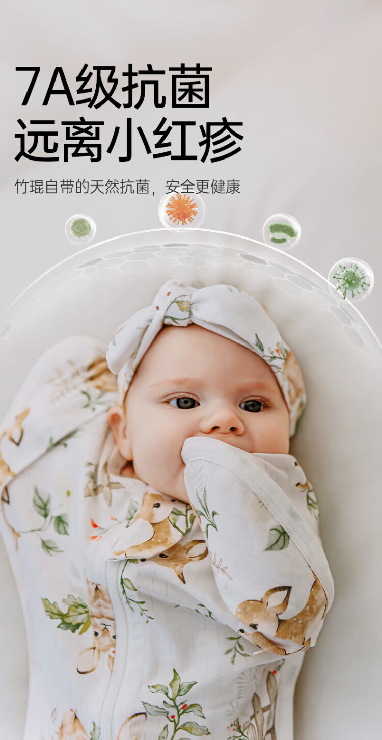 OUYUN Bamboo Cotton Baby Sleeping Bag Surrender-style Anti-jump Sleeping Bag Spring and Autumn Swaddle Cover Flower Language Illustrated Book 65*26