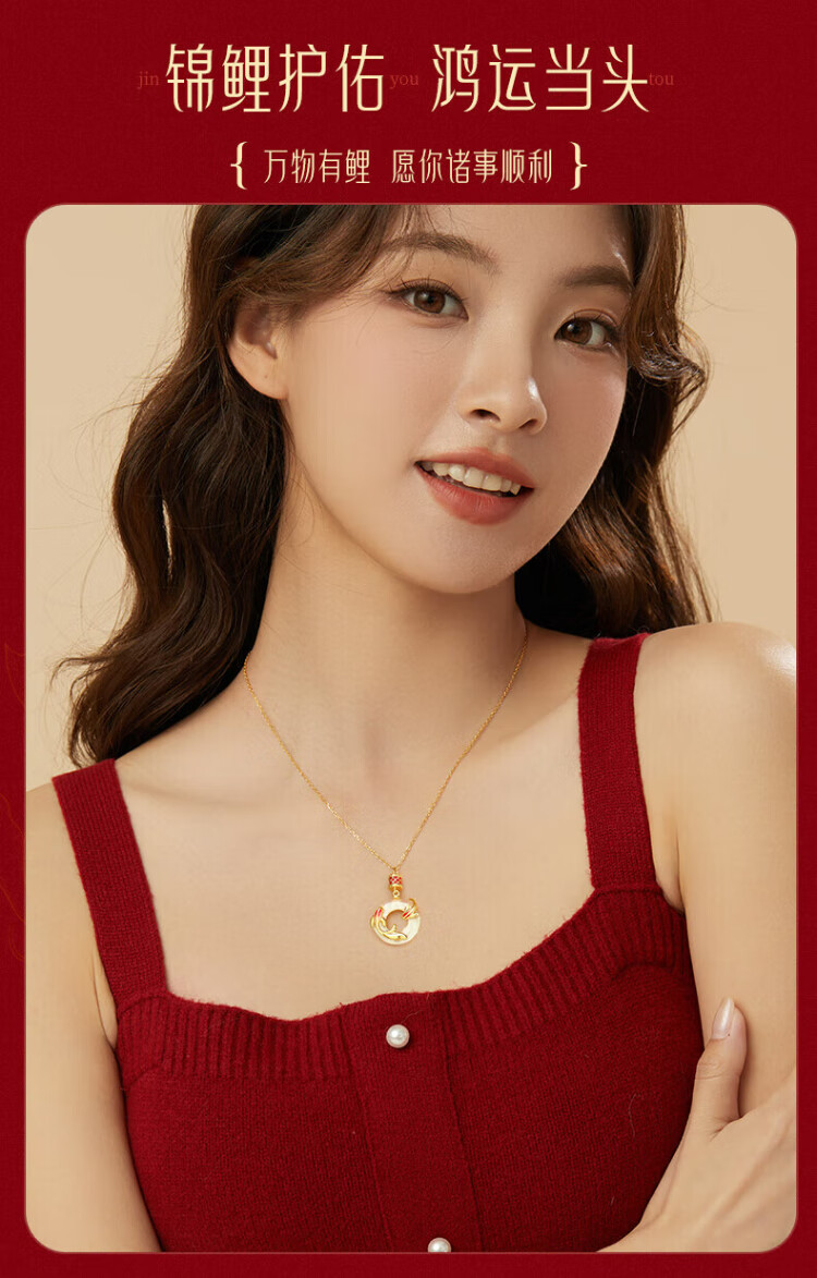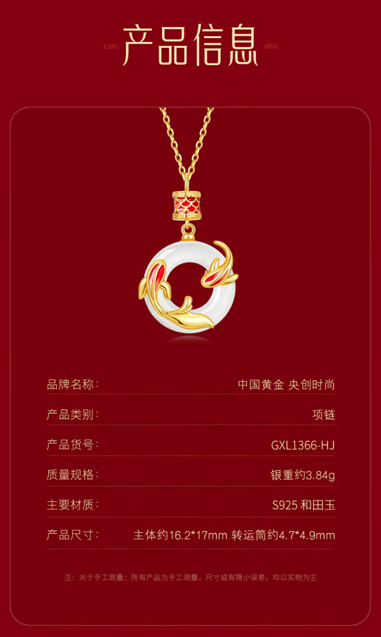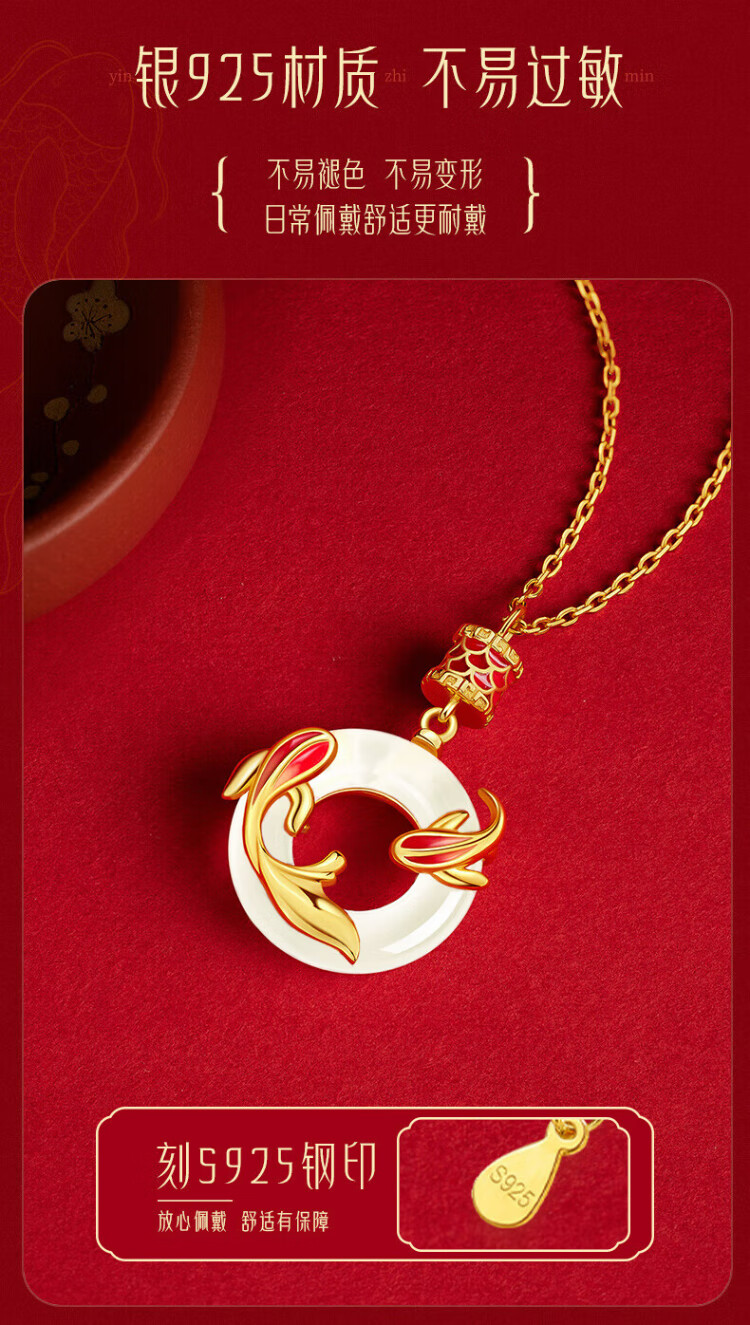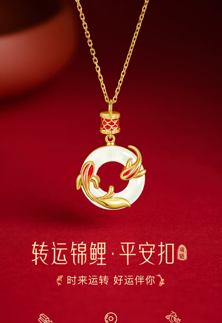Central Chuang Fashion China Gold Authorized Necklace Women's Hetian Jade Safety Buckle Birthday Chinese Valentine's Day Gift Girlfriend S925