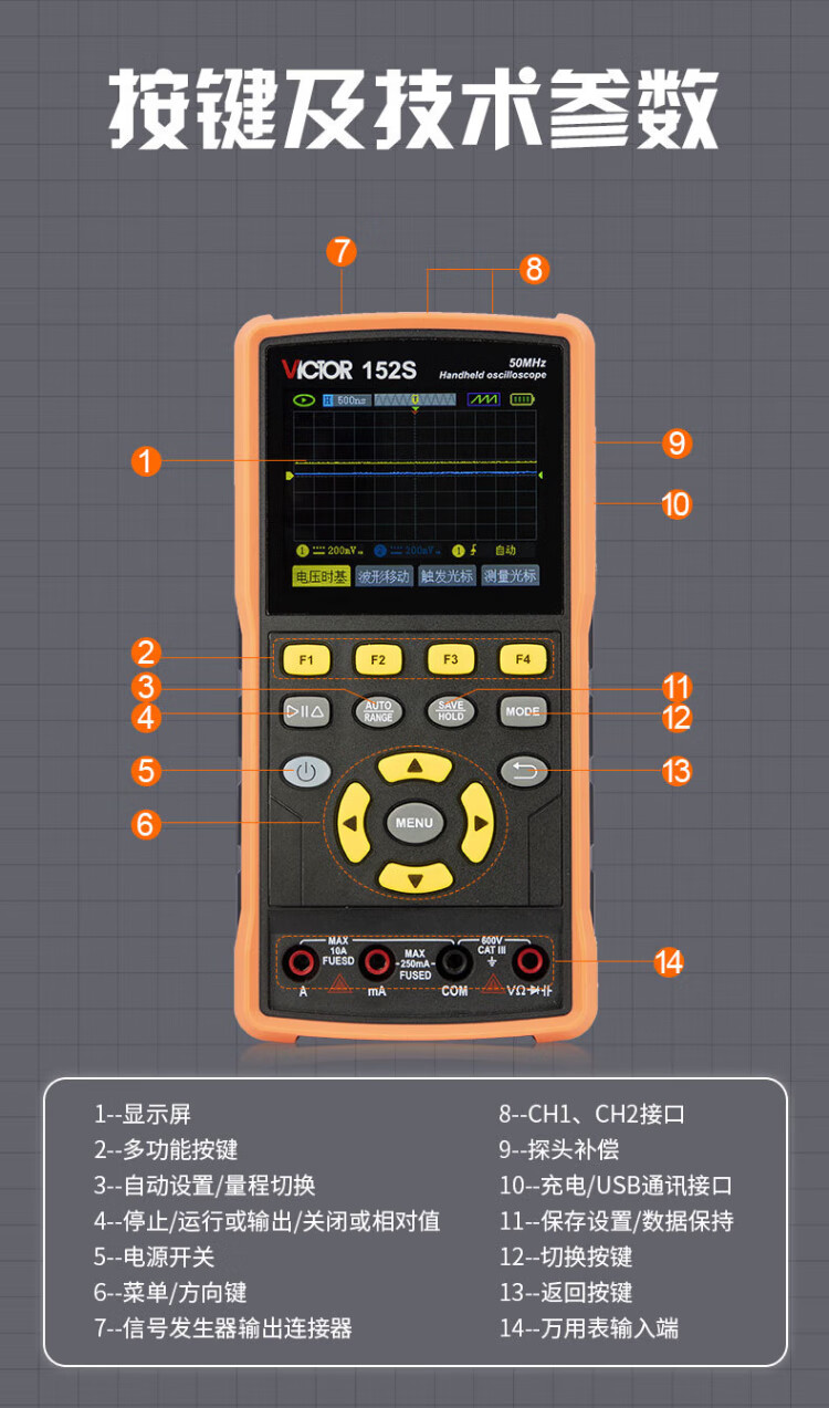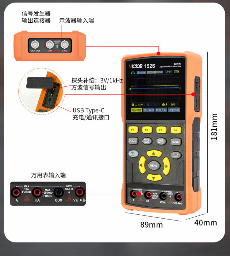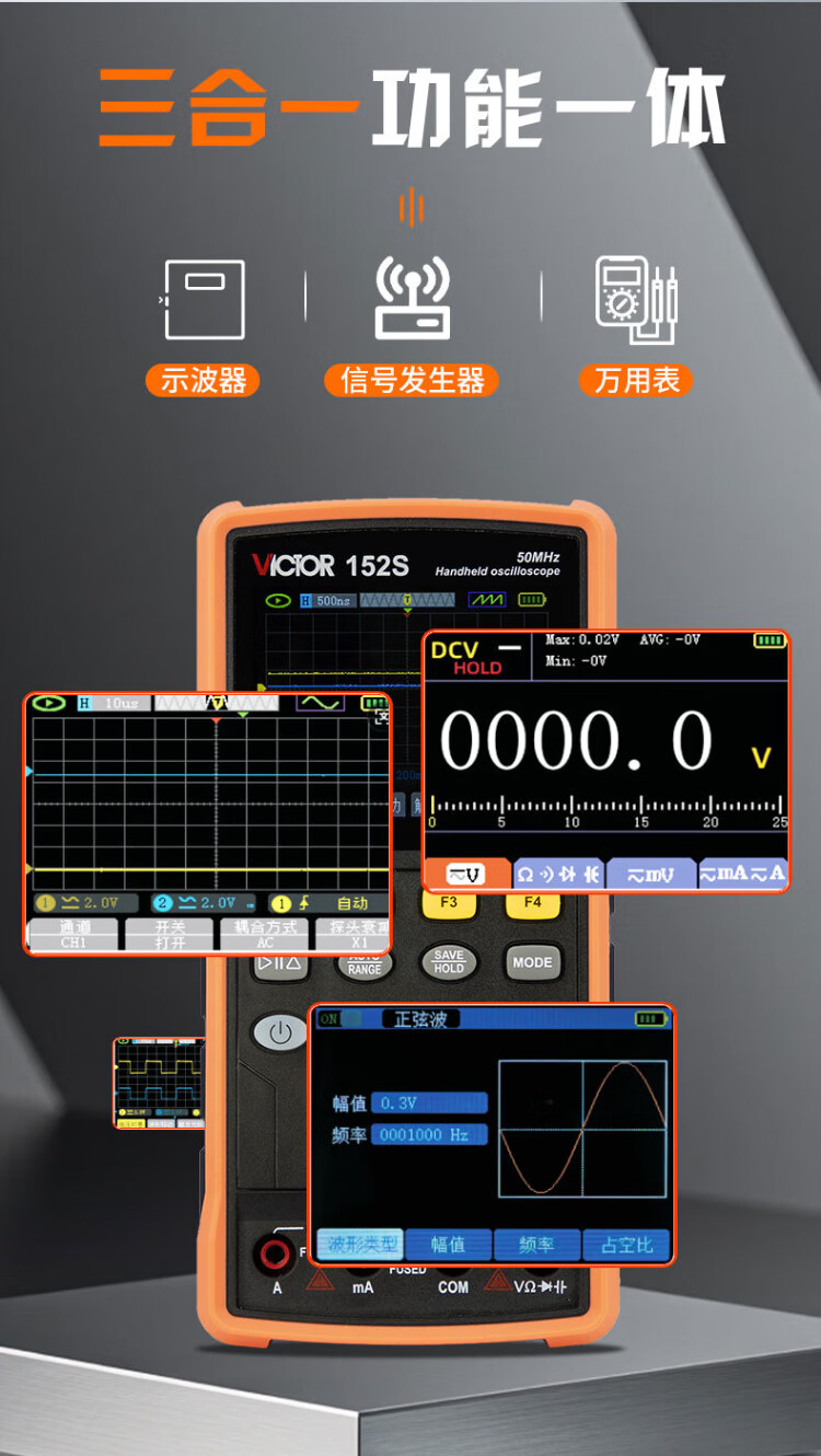 Victory Instrument (VICTOR) handheld digital oscilloscope portable multimeter three-in-one oscilloscope signal generator home VC152S
