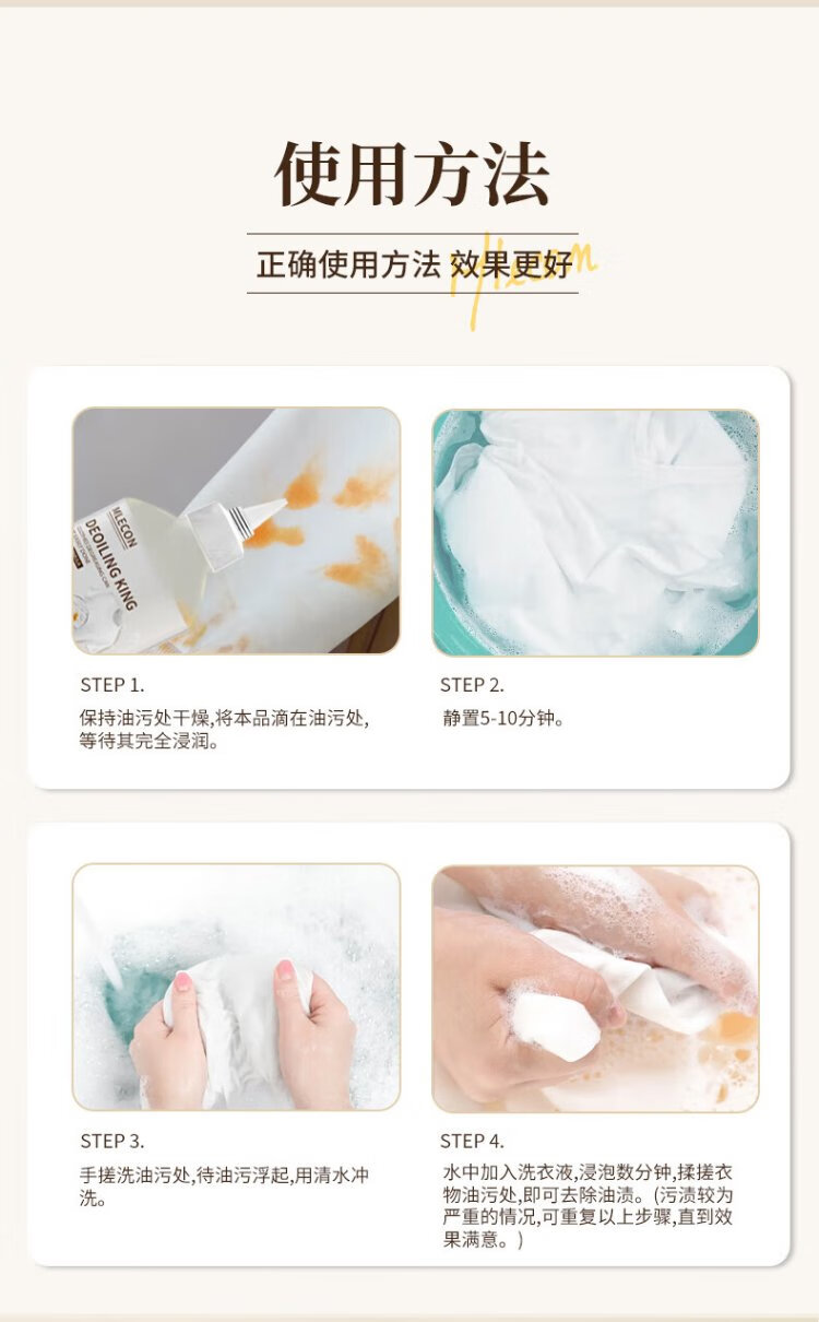 MLECON European Oil-Removal Clothes Cleaner Clothes Oil-Removal King Artifact Oil-Removal King Clothes Remover for Stubborn Oil Stains