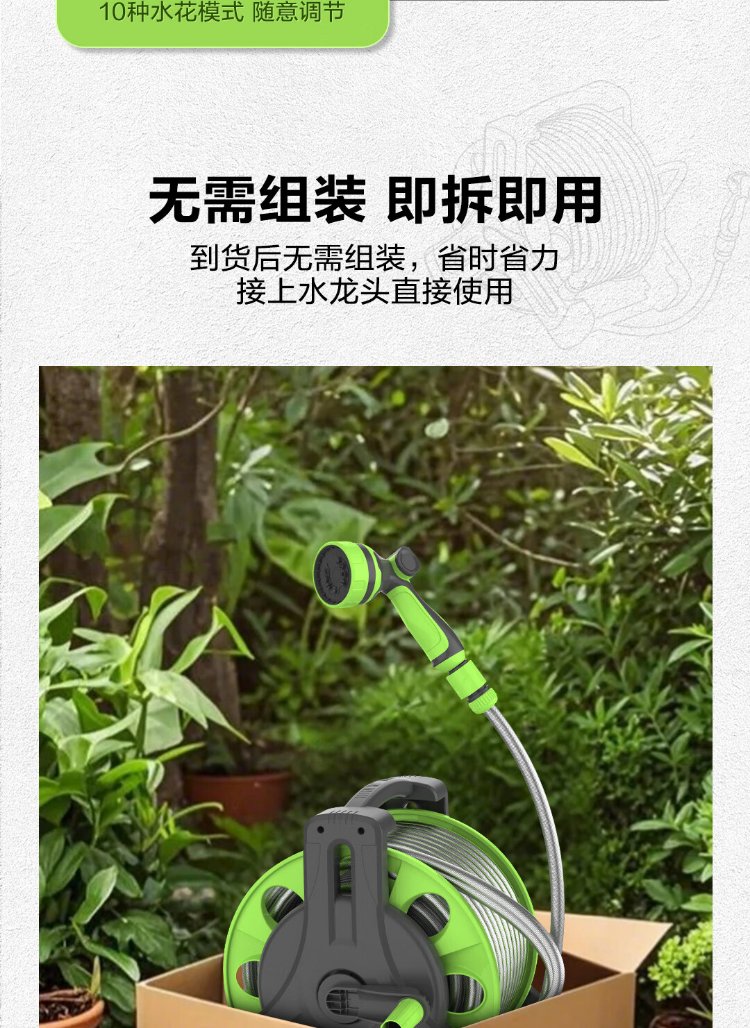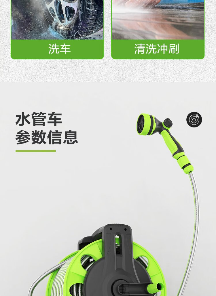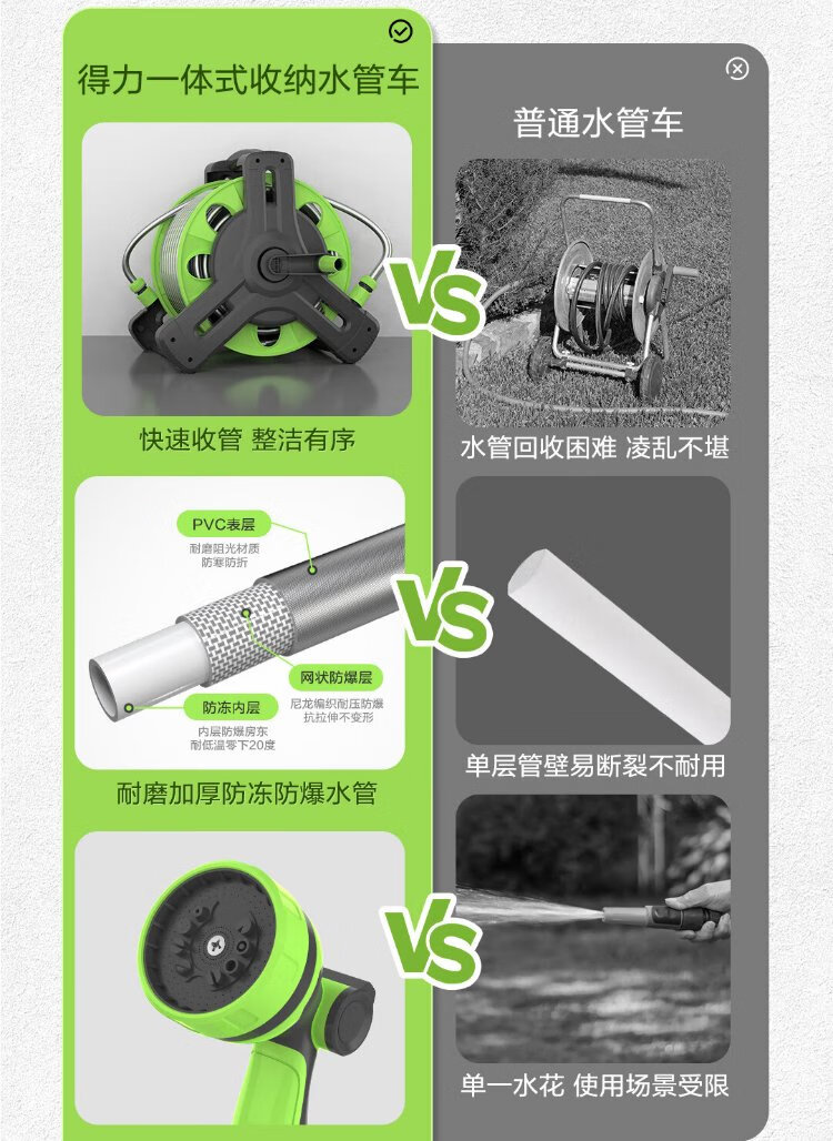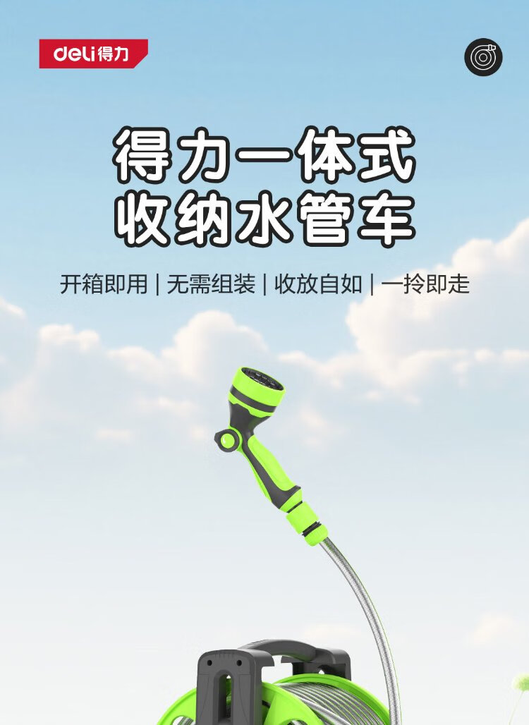 Deli Deli Car Wash High Pressure Water Gun Home Gardening Flower Watering Storage Water Pipe Frame + 30 Meters Water Pipe