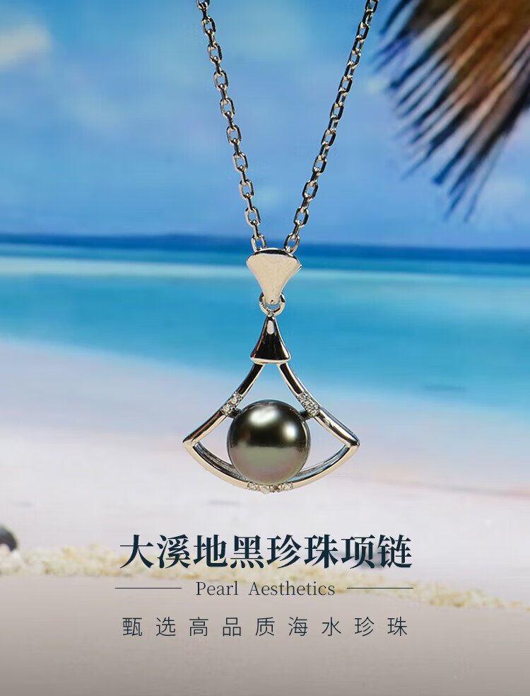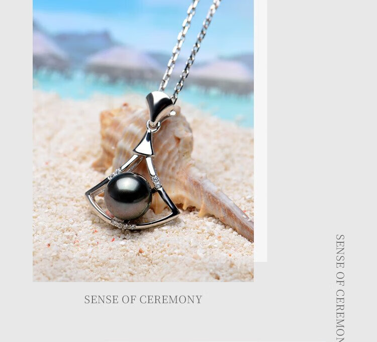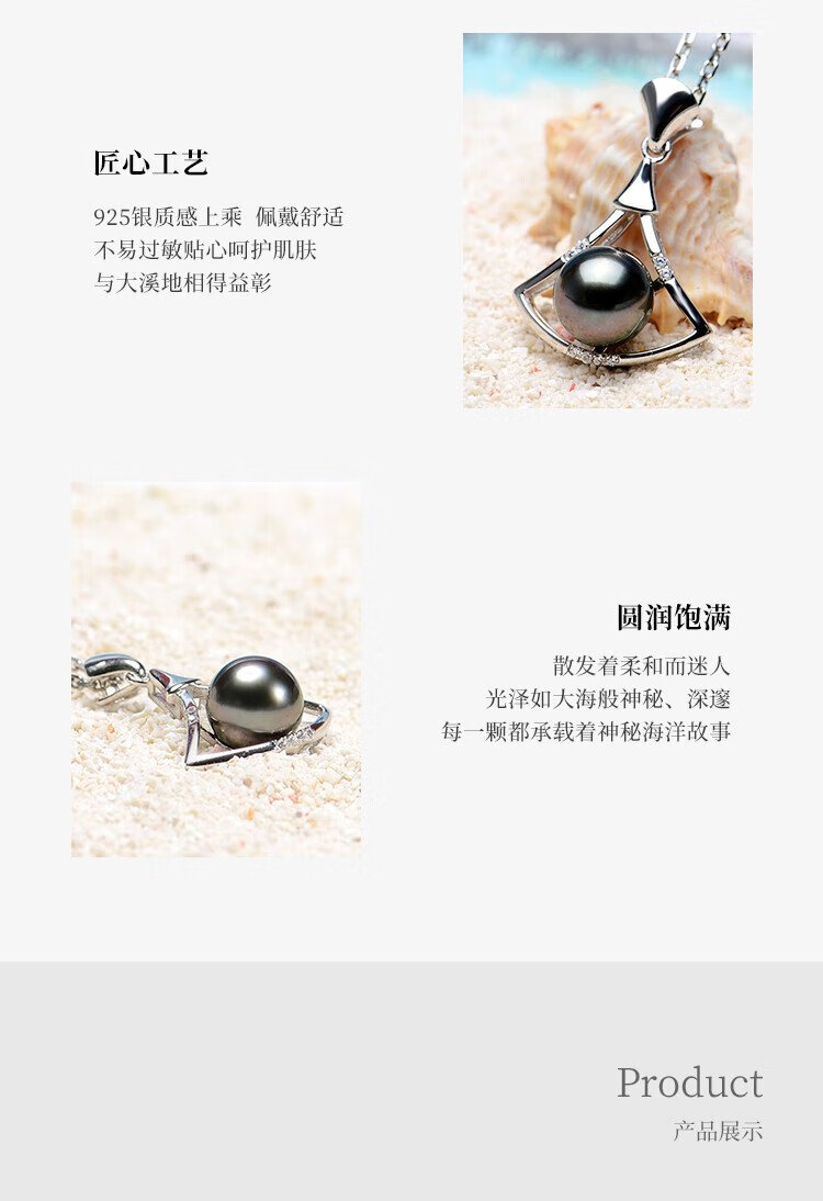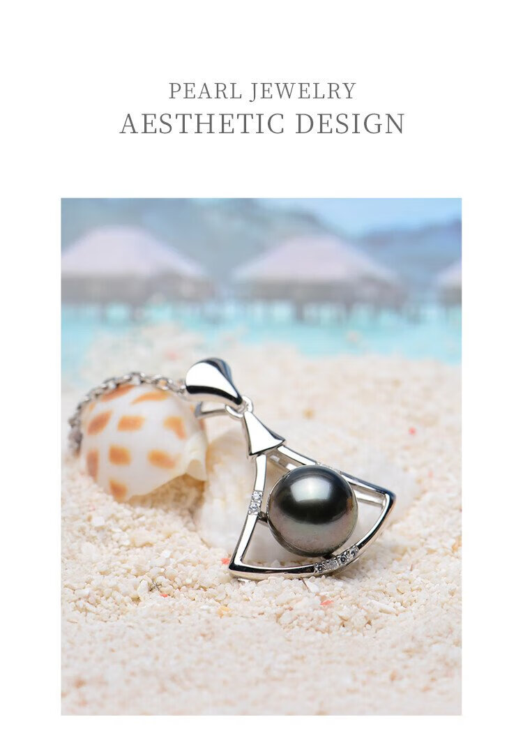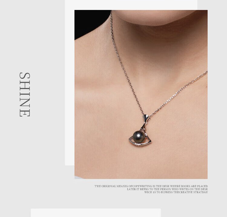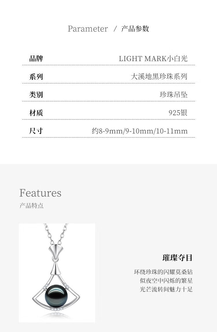 LIGHT MARK Small White Light Selected Seawater Pearl Necklace Small Fan S925 Tahitian Black Pearl Pendant Clavicle Chain 8-9mm