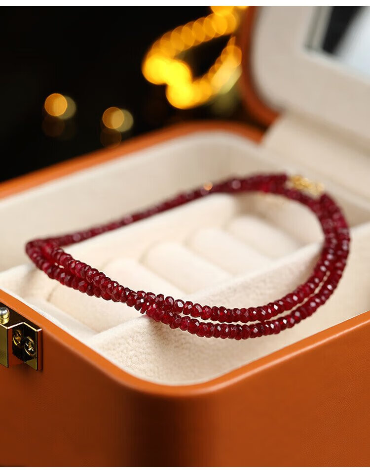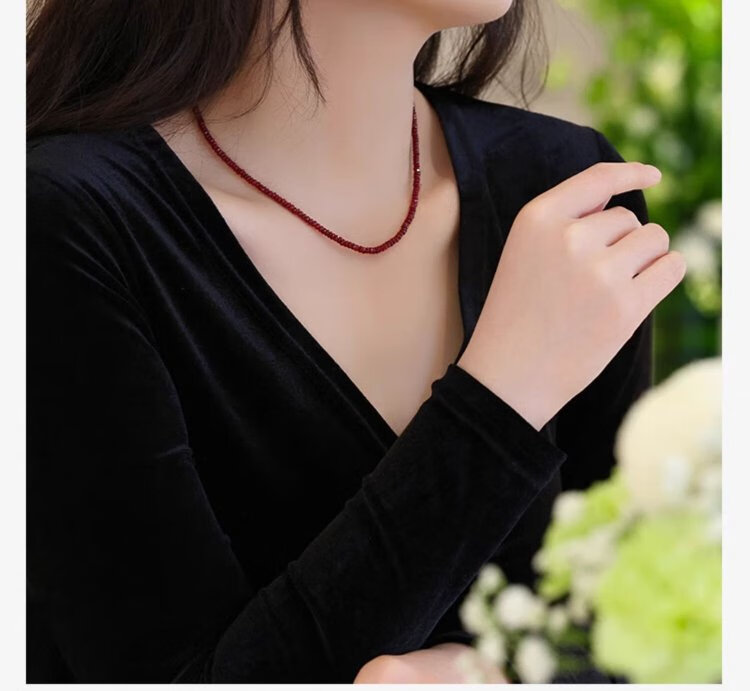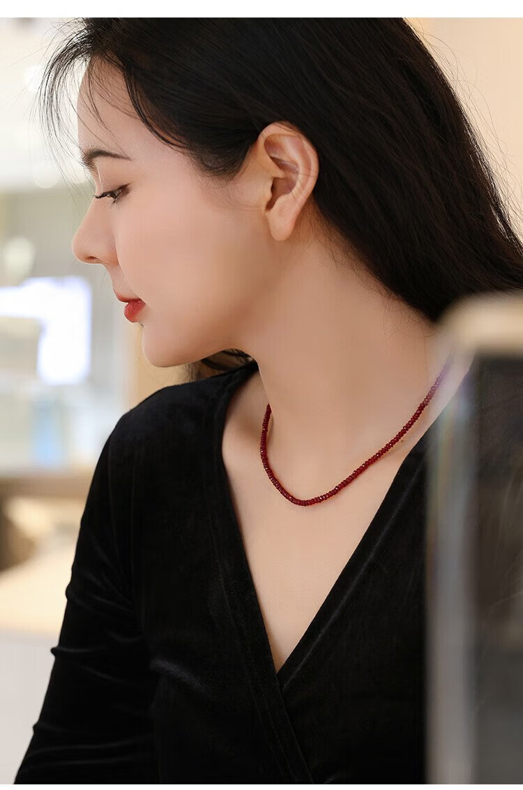 Demi Fengqiuhuang faceted ruby necklace plain chain 18K gold clavicle chain short choker necklace for girlfriend as a gift