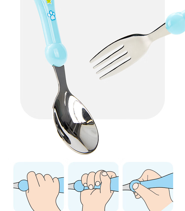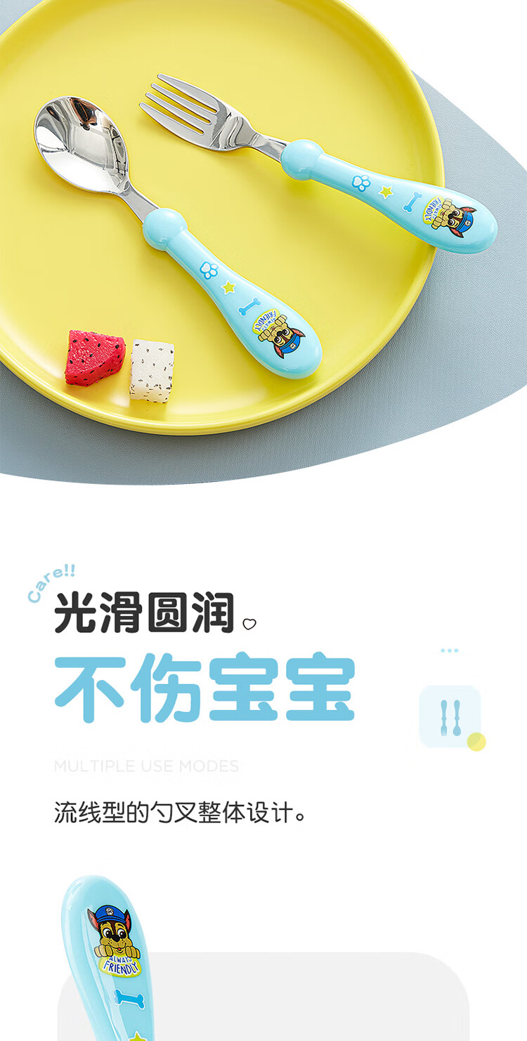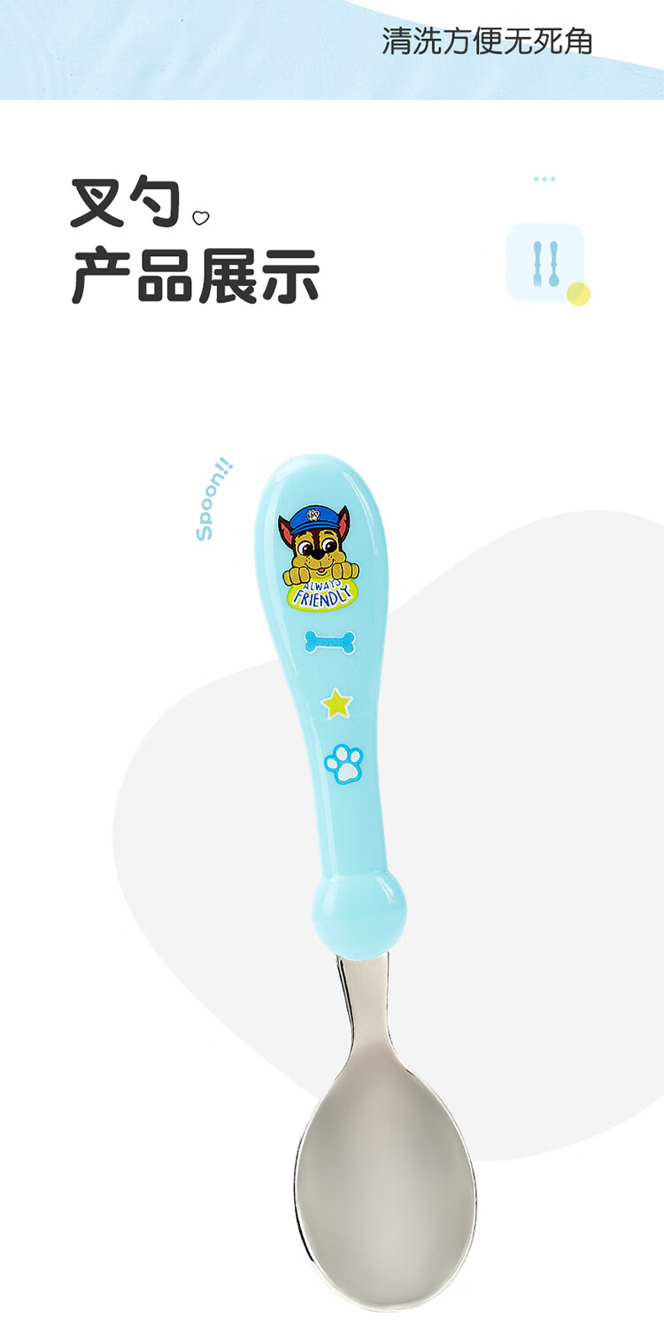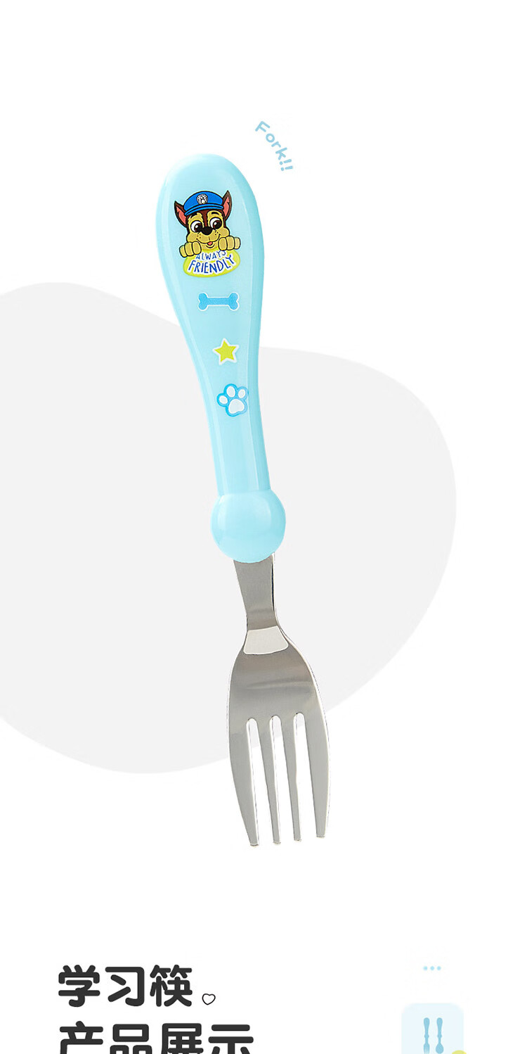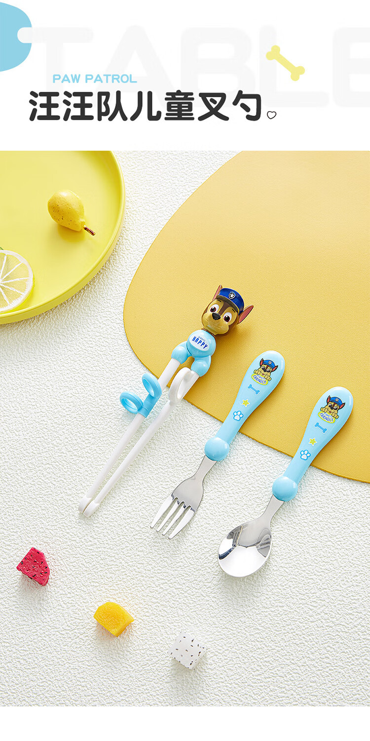 Wangwang team has made great achievements in children's chopsticks, spoon and fork combination set, baby learning and training chopsticks, complementary food, spoon and fork 233DT920 blue