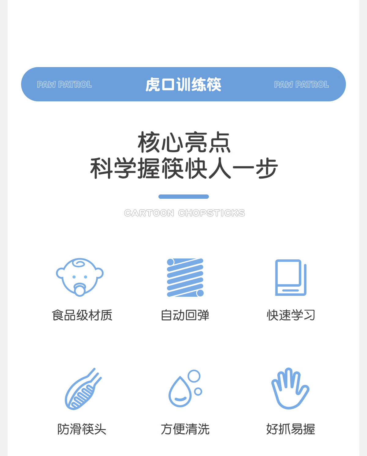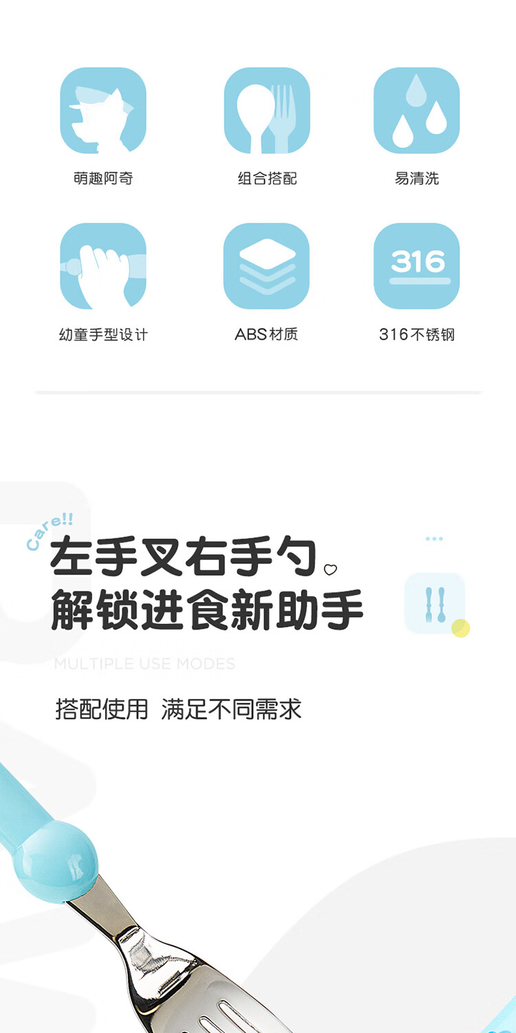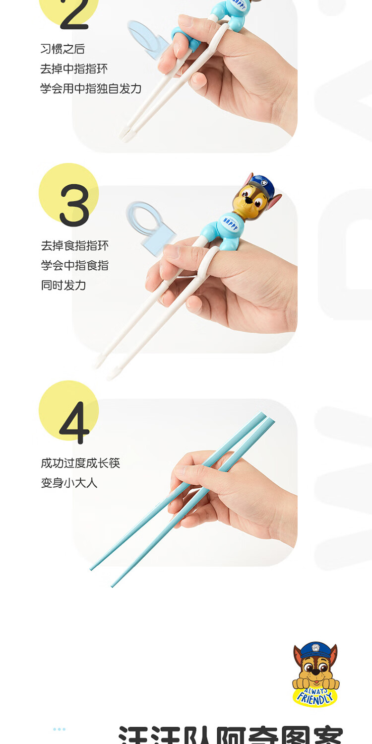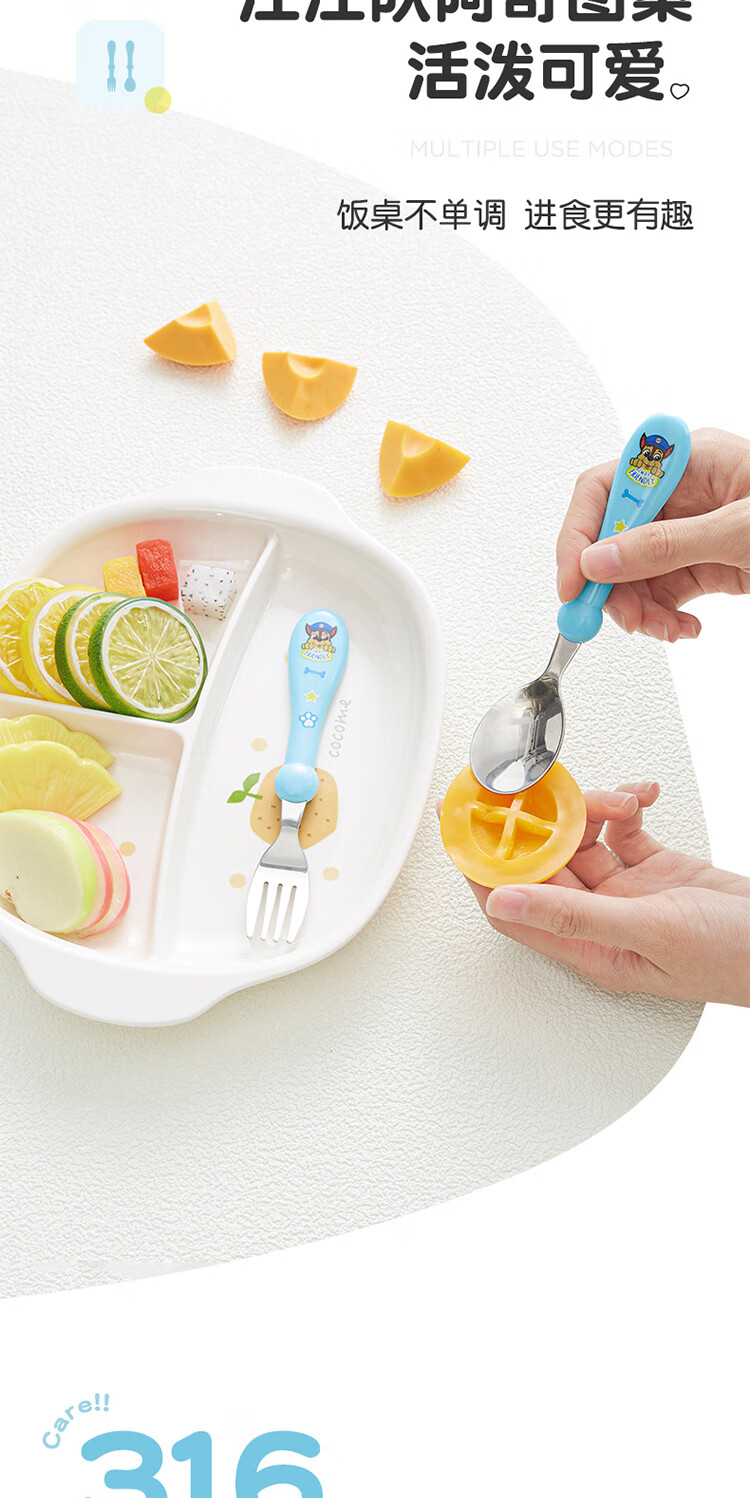 Wangwang team has made great achievements in children's chopsticks, spoon and fork combination set, baby learning and training chopsticks, complementary food, spoon and fork 233DT920 blue