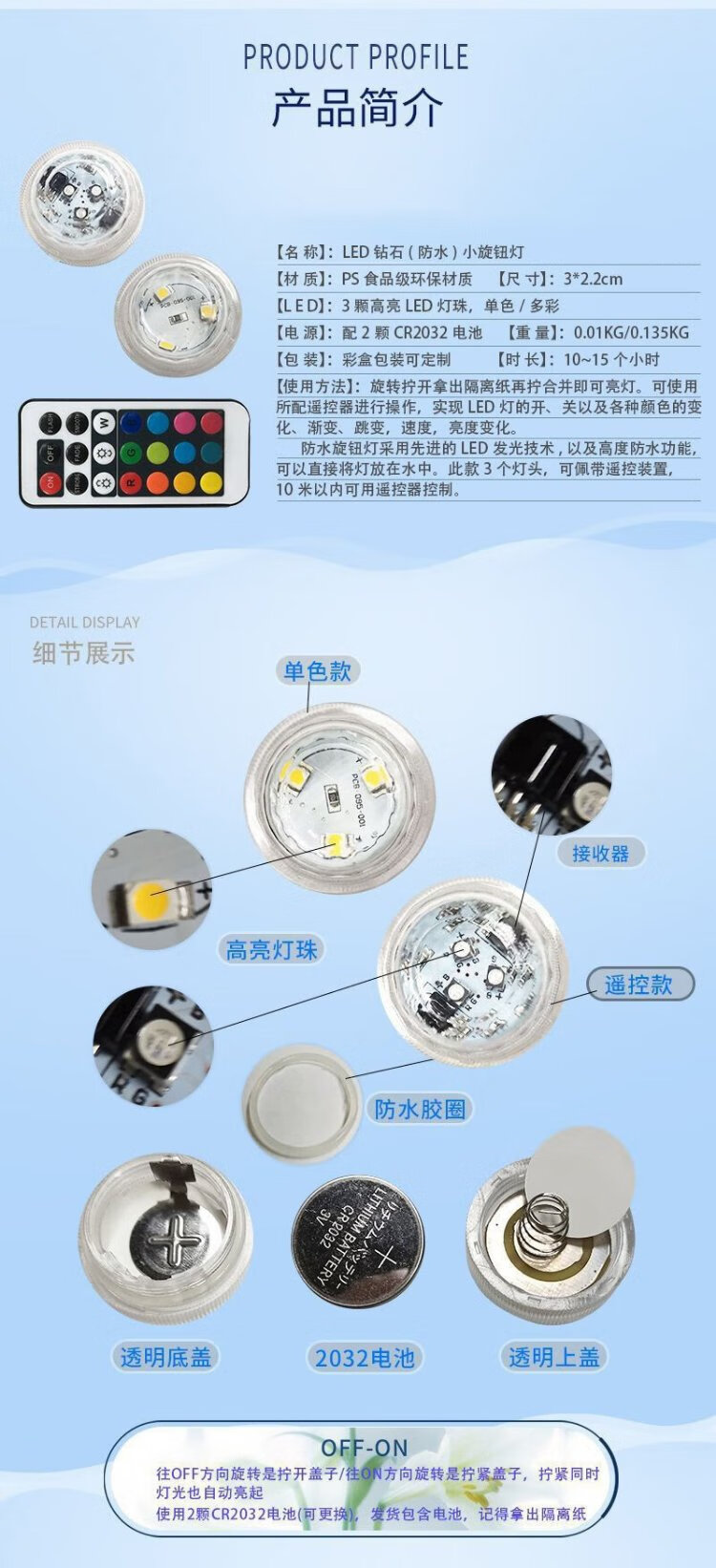 Masterlang Waterproof Remote Control Colorful Light Candle Light Aquarium Diving Light LED Underwater Light Diamond Small Knob Light 2 Colored Lights (With 1 Remote Control)