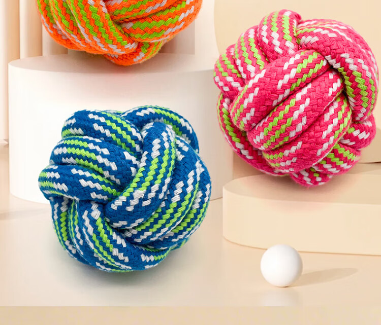 Zanpet Macaron, bite-resistant and molar-resistant rope ball 3-piece set, large size, pet big dog dog toy, self-entertainment and boredom relief, Bichon Frize