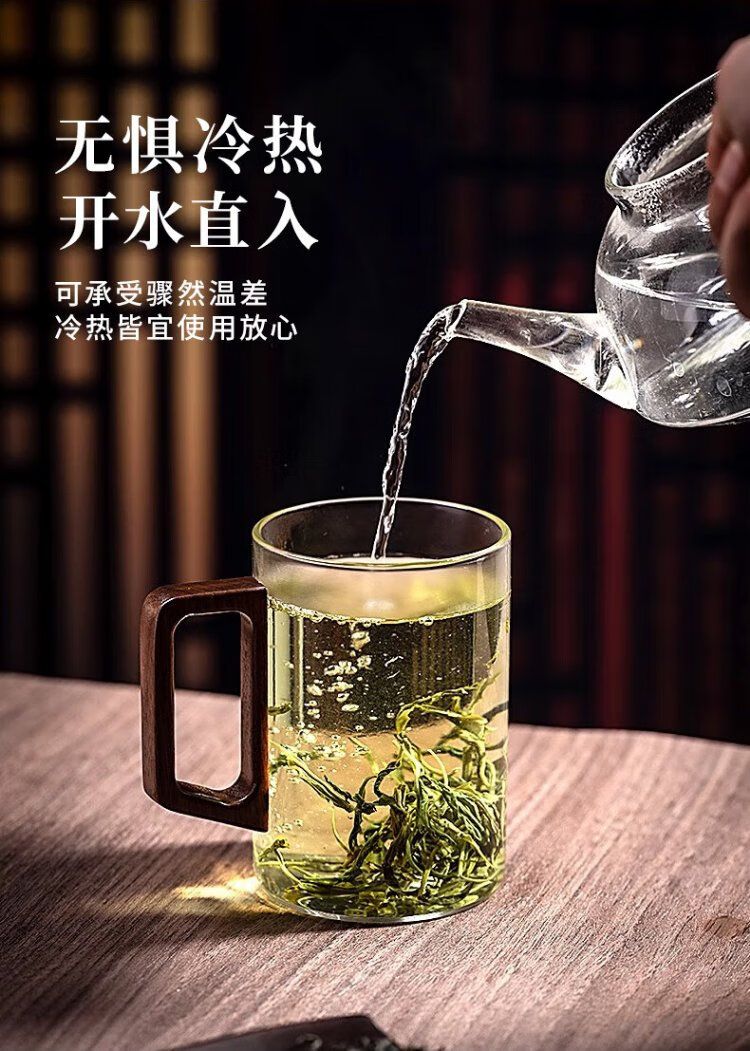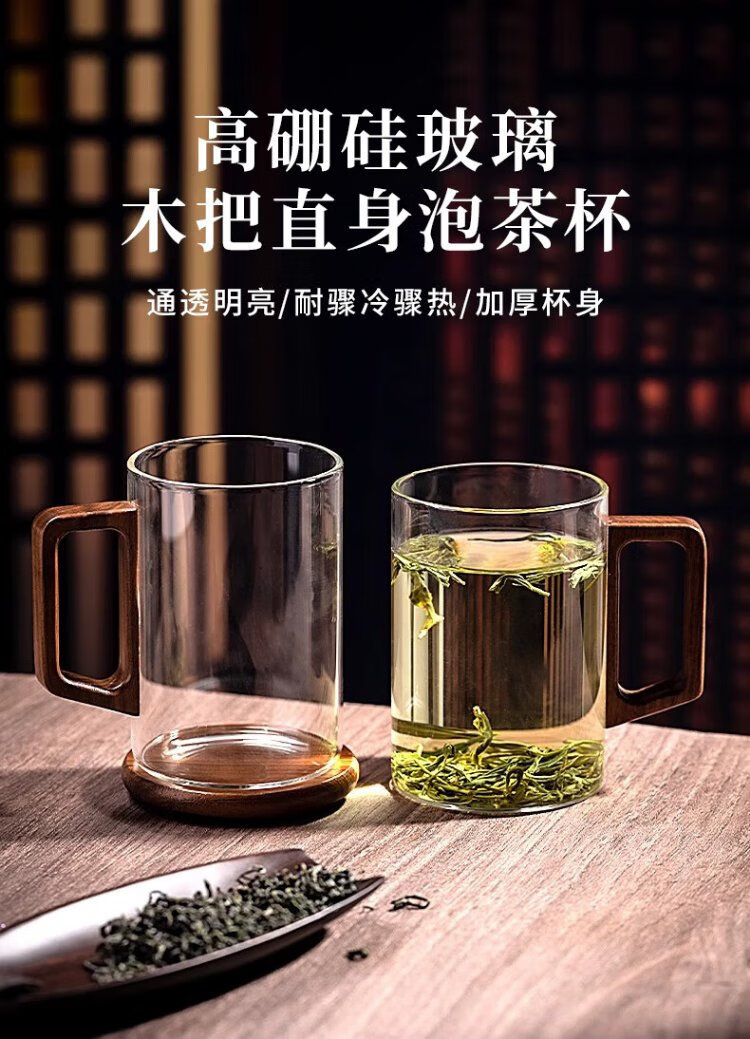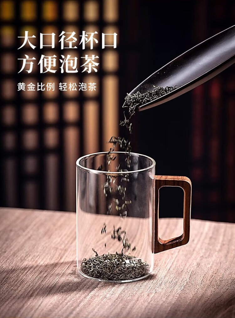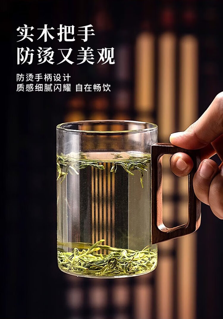 Home easy tea cup high borosilicate glass tea cup wooden handle with handle water cup for men and women high temperature resistant home office tea cup