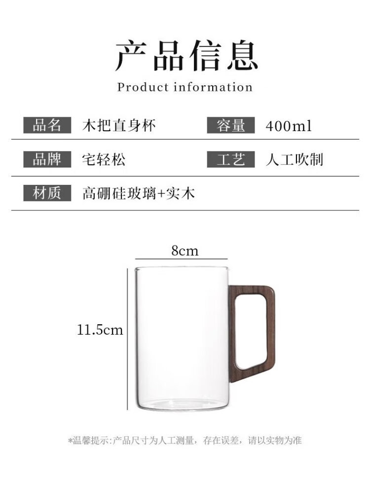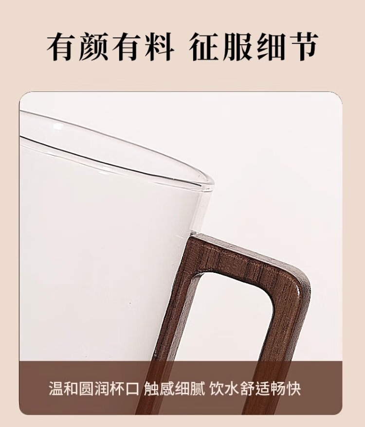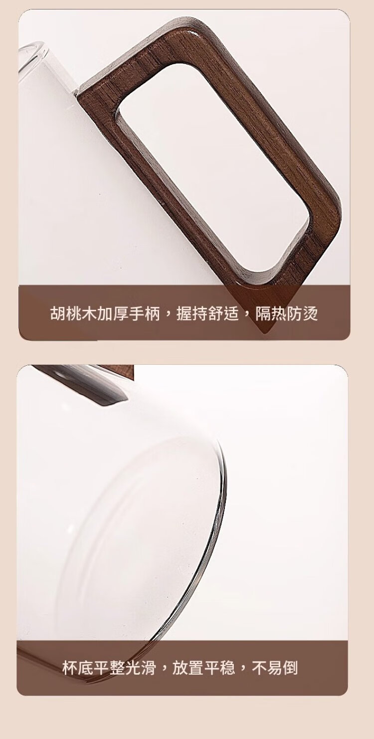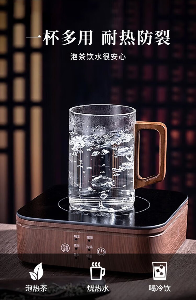 Home easy tea cup high borosilicate glass tea cup wooden handle with handle water cup for men and women high temperature resistant home office tea cup