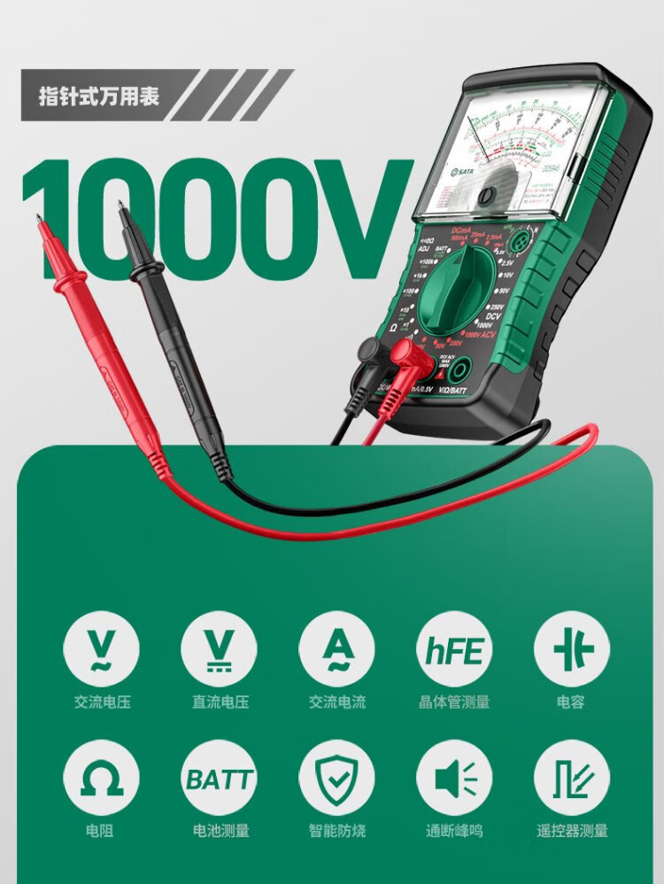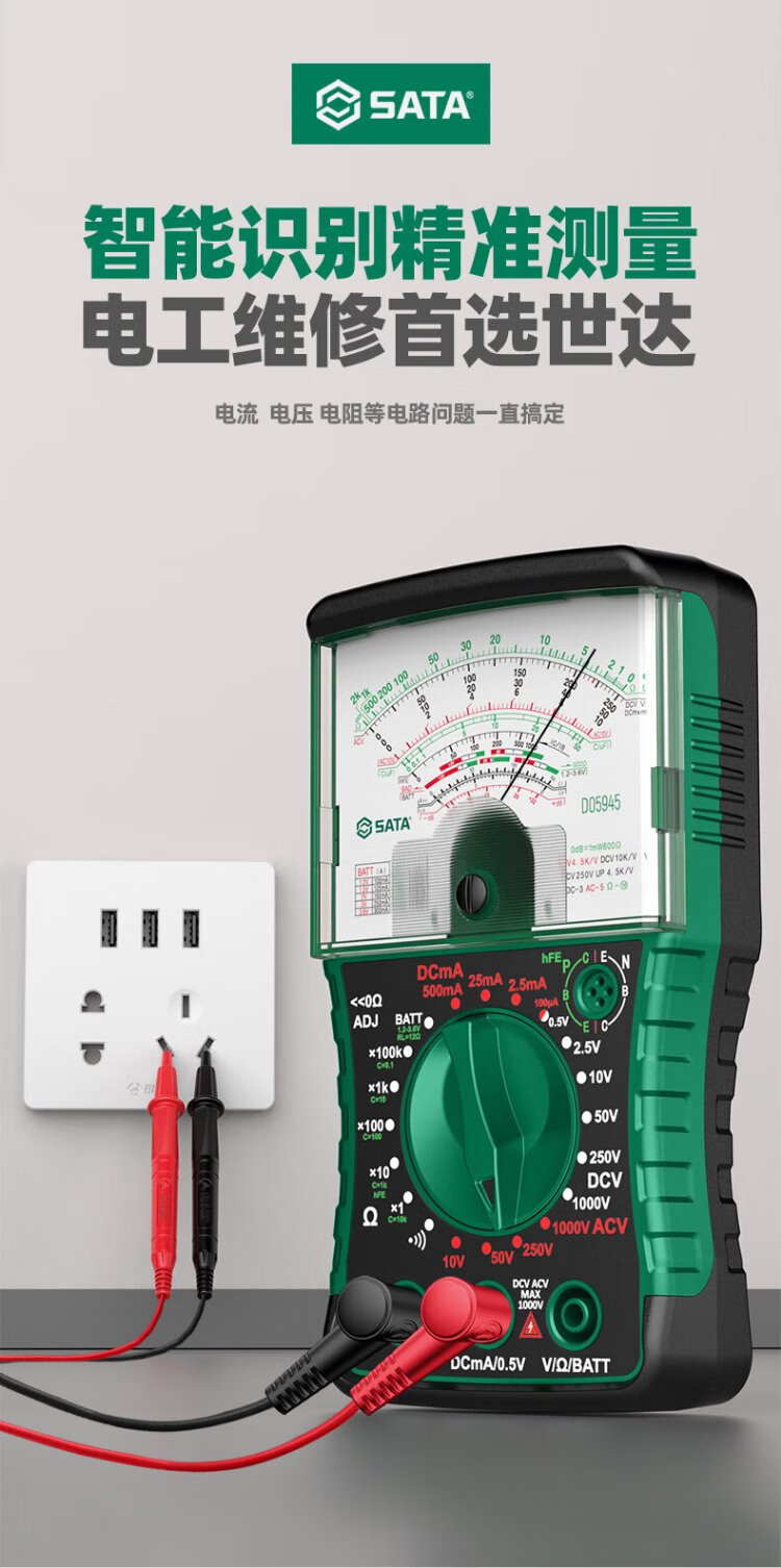 Shida SATA pointer multimeter burn-proof high-precision multimeter D05946 standard + special tip pen + charging set