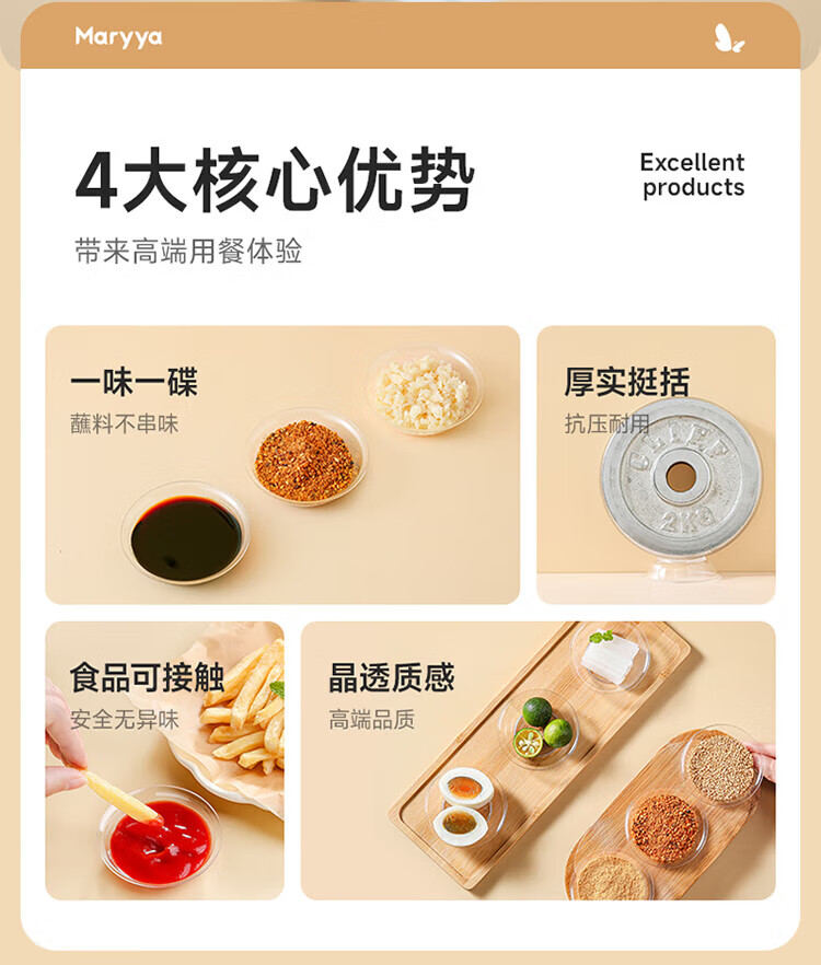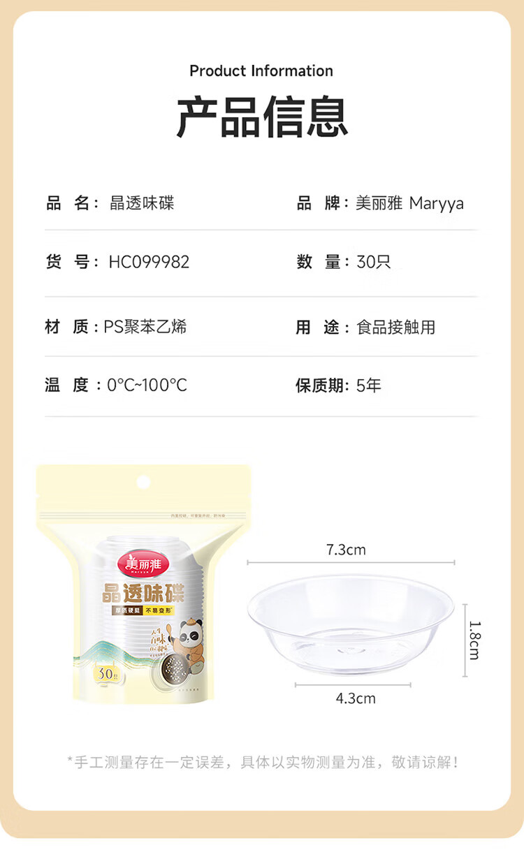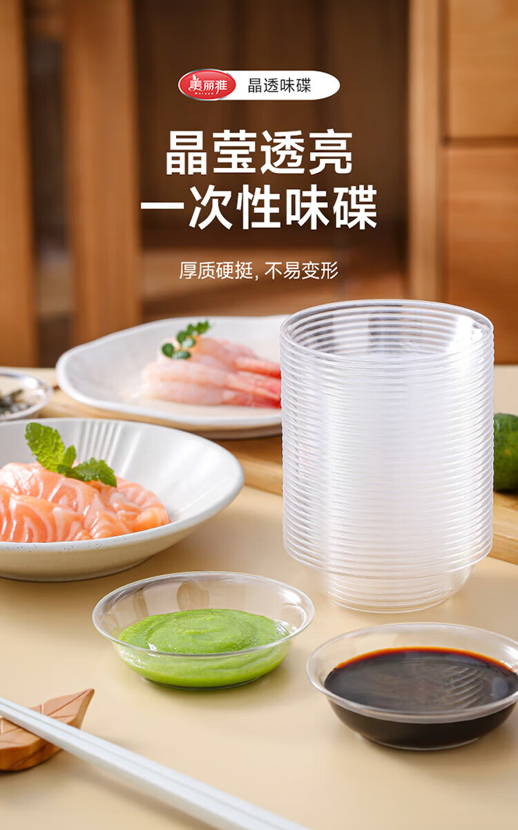 Meiya disposable plates, 30 pieces, small tableware, soy sauce dipping and seasoning refill plates