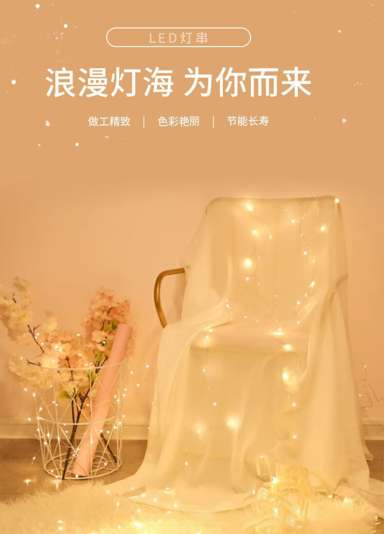 Yuanbo LED light string small white box light string lighting three-speed adjustable outdoor copper wire light strip 3 meters warm color (shipped from Beijing warehouse)