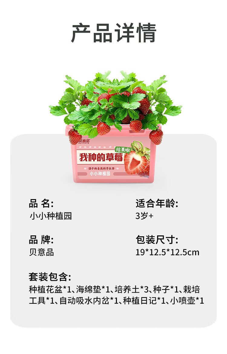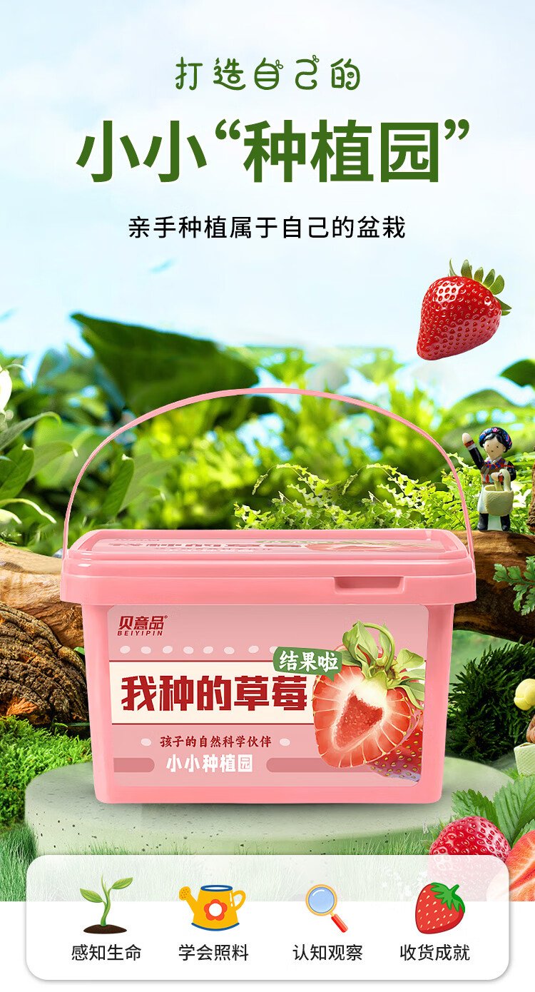 Beiyipin children planting small potted cream strawberry fruit seeds kindergarten plant observation box primary school student gift