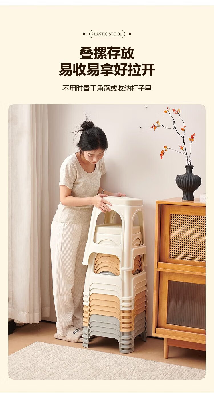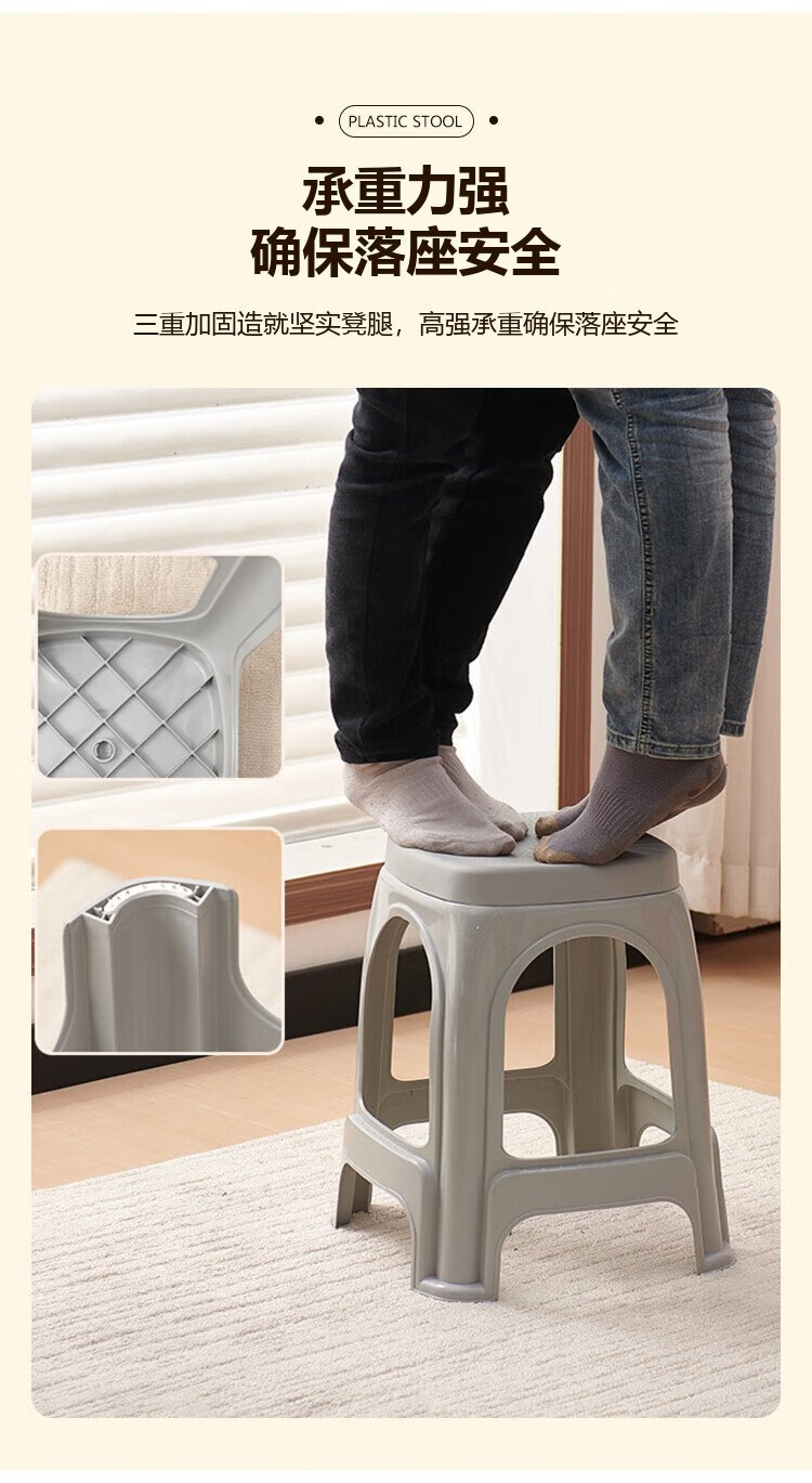Anafor plastic stool household small bench shoe changing stool baby dining chair learning chair back chair HK5178 gray