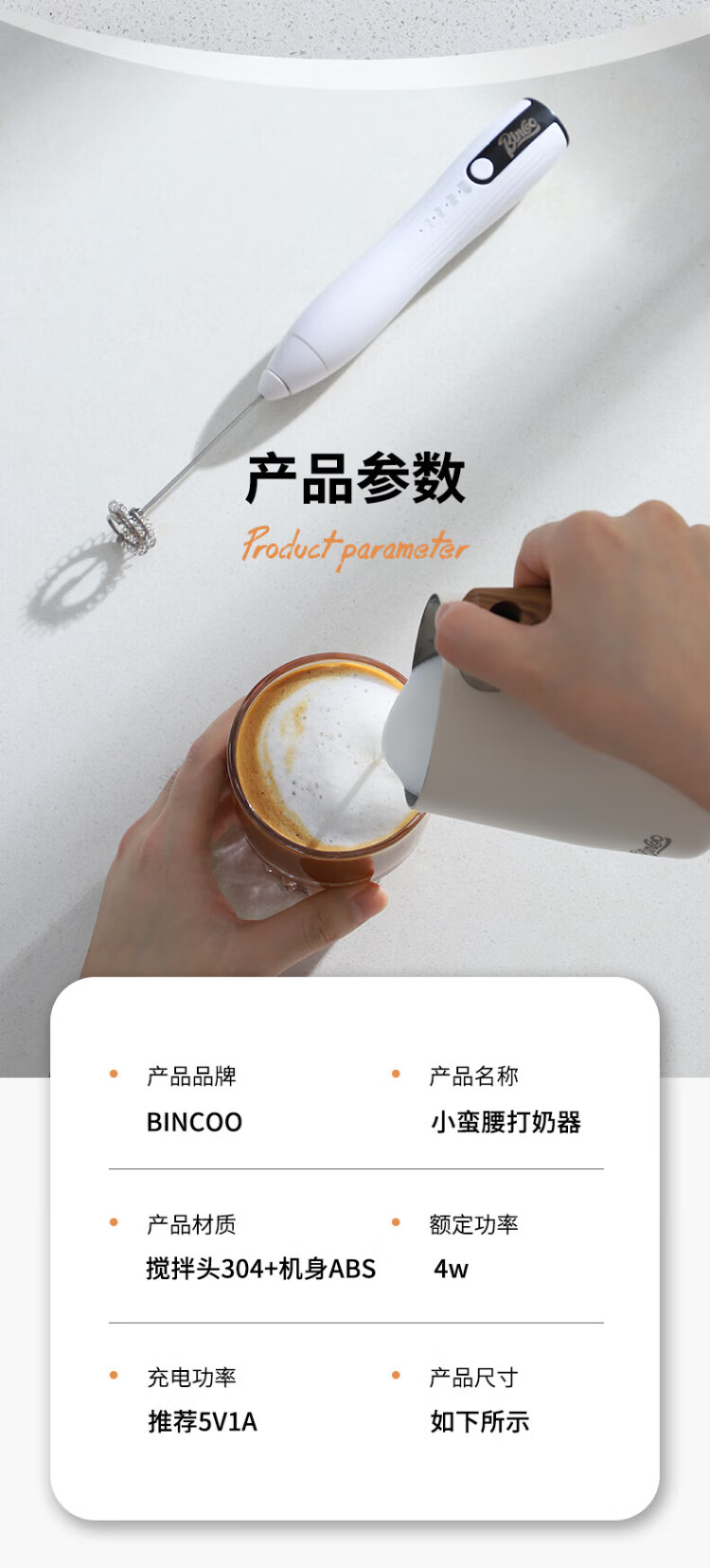 Bincoo milk frother household electric milk frother milk stirrer coffee frother handheld whipper