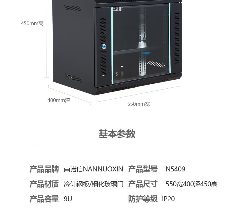 Nannuoxin cabinet N5409 9U network wall-mounted cabinet wall cabinet weak current wiring cabinet 550 wide 400 deep 450 high