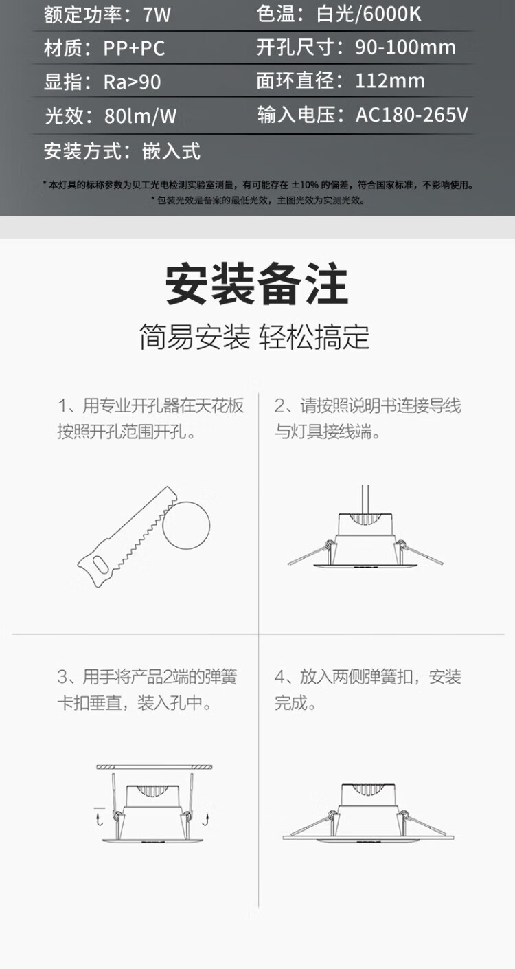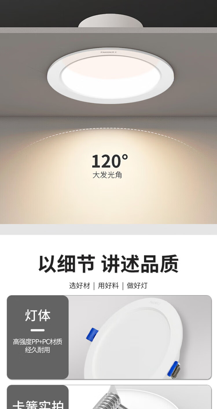 Beigong LED downlight embedded ultra-thin hole light opening 9-10cm 3.5 inch 7W white light 6000K Ra 90 living room ceiling corridor downlight hole light ceiling light extraordinary series