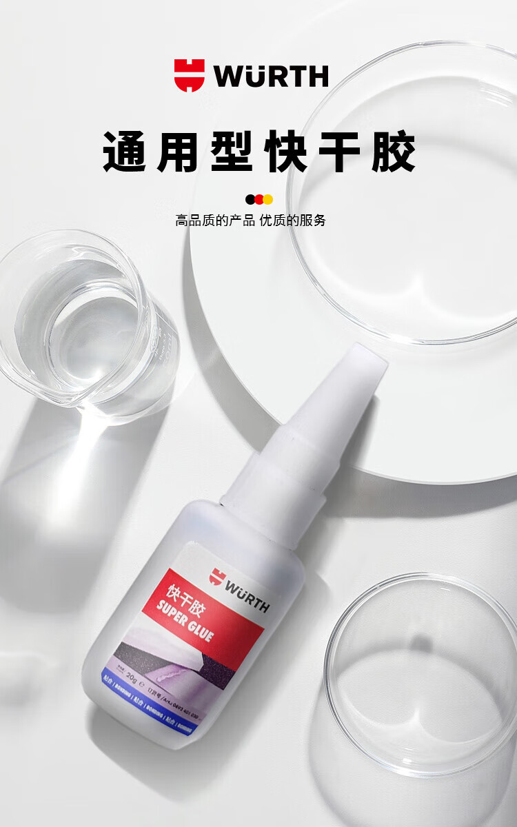 WURTH German brand quick-drying glue strong glue liquid glue 6-second instant adhesion and high-transparency formula transparent, traceless and non-whitening Non-universal glue 502 sticks to metal, plastic, ceramics and wood