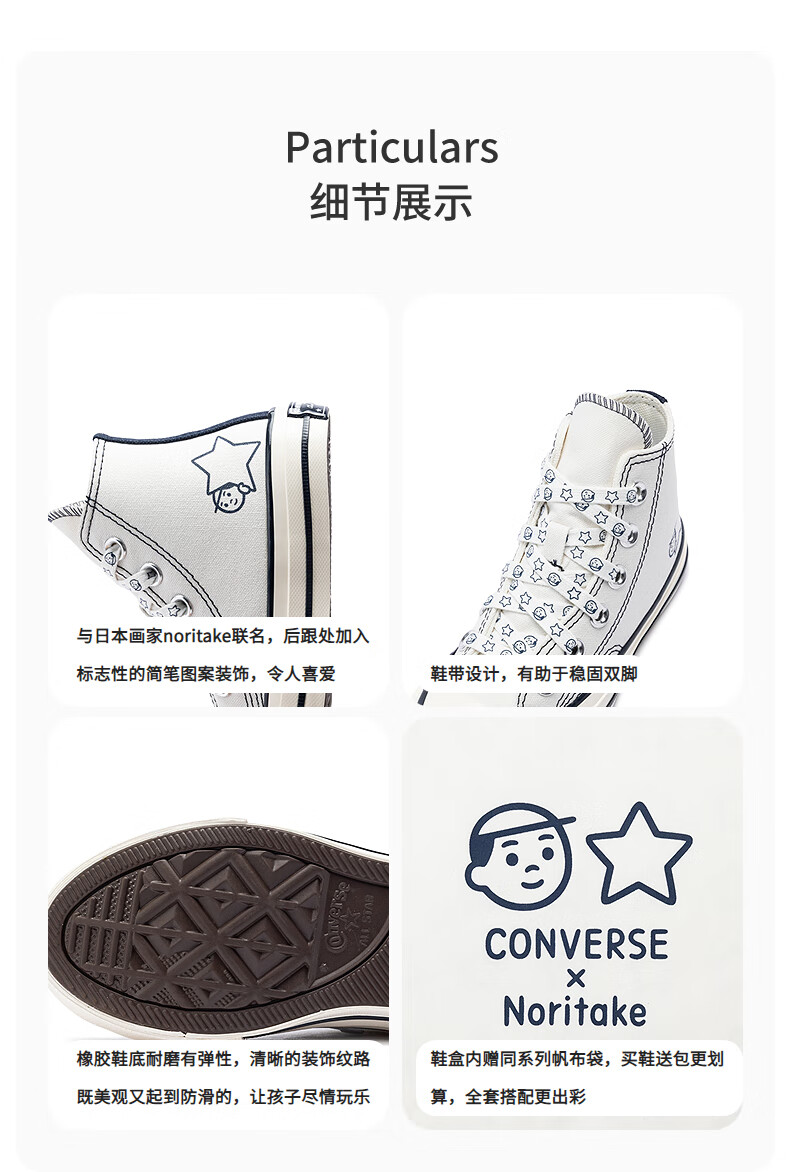 Converse canvas shoes for boys and girls Noritake joint children's wear-resistant non-slip casual shoes