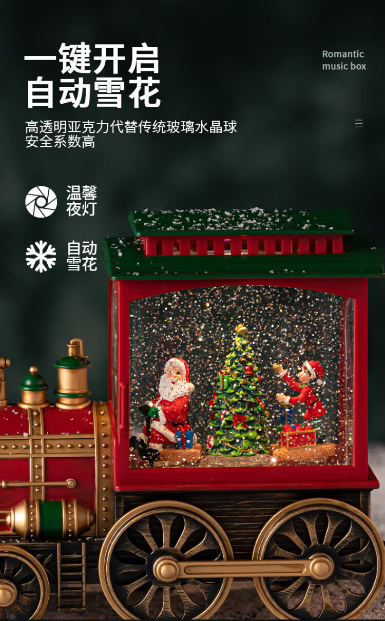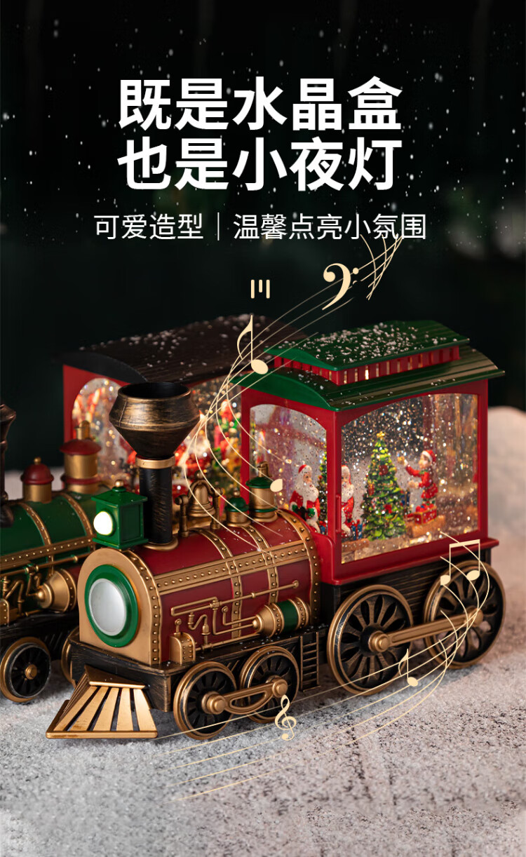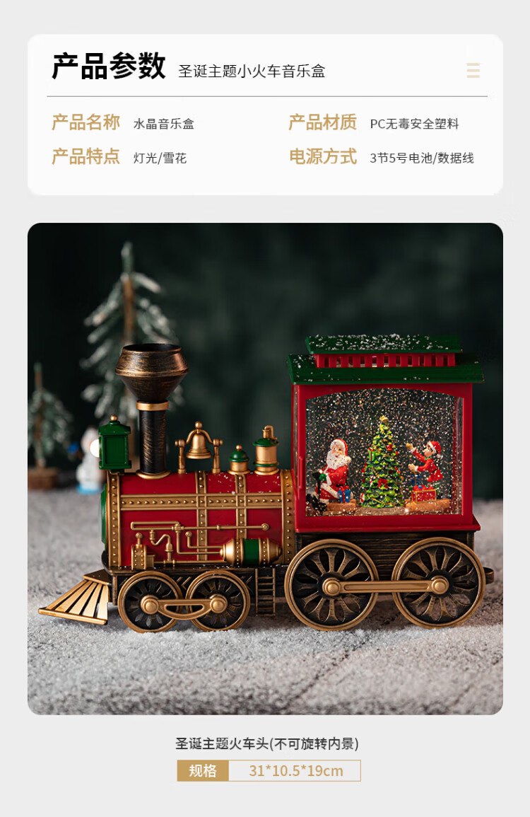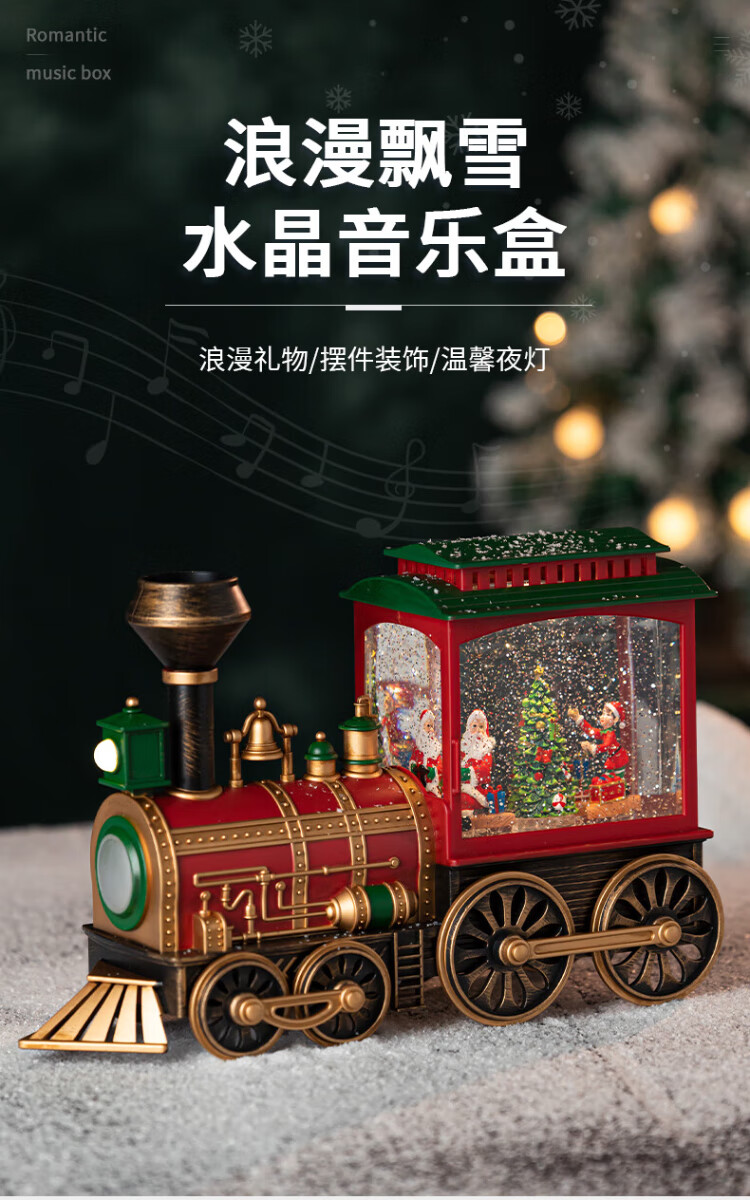 Mayjia Christmas gift box train rotating music music box children boys crystal lamp ornaments year-end blessing bag New Year's Eve