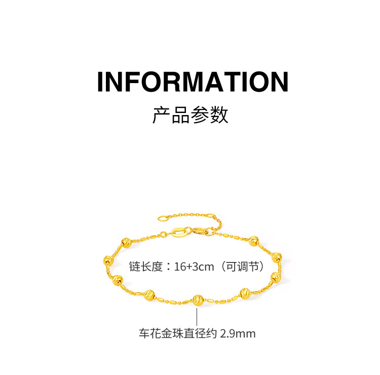 Saturday Fortune Yellow 18K Gold Bracelet Women's Gold Bead Color Gold Bracelet for Girlfriend's Birthday Gift C0715157 16+3cm