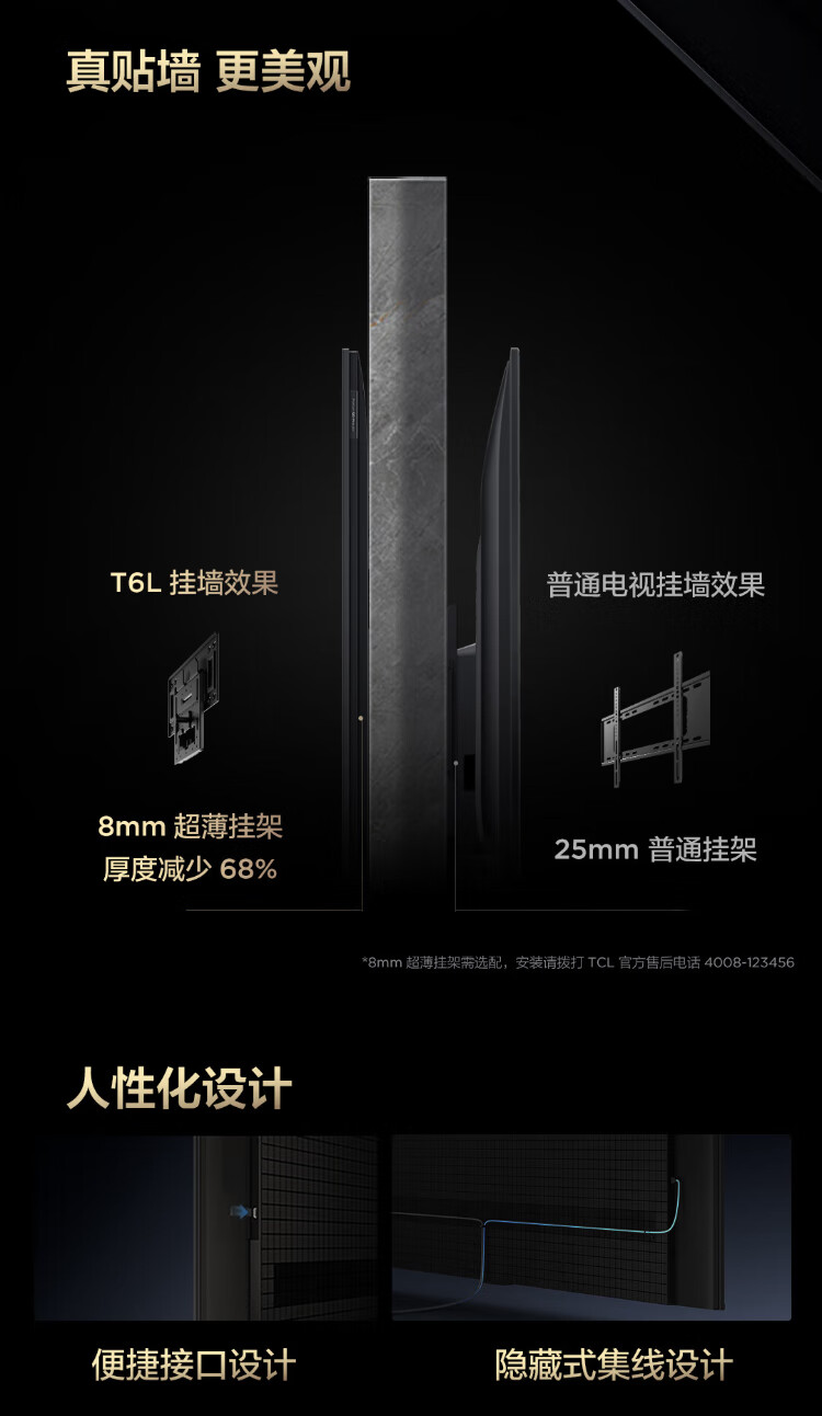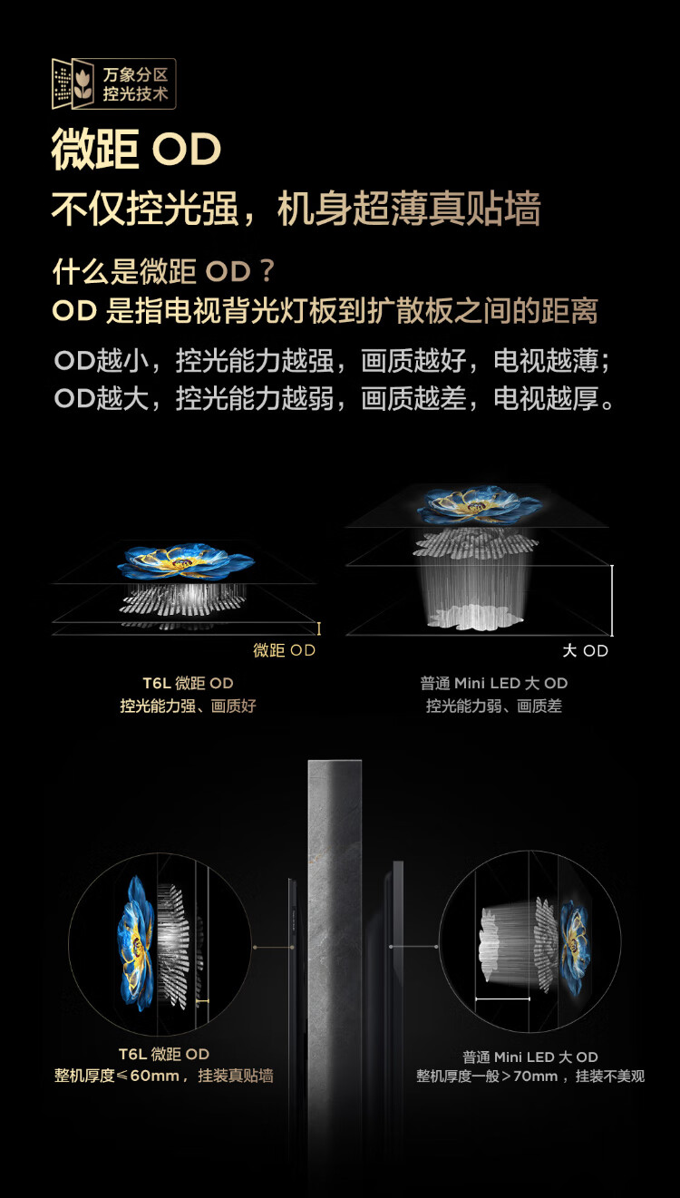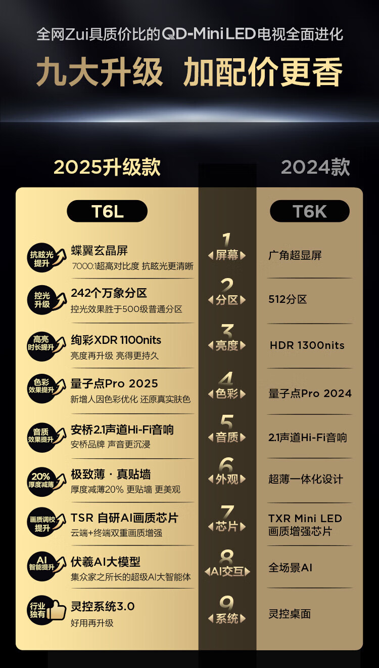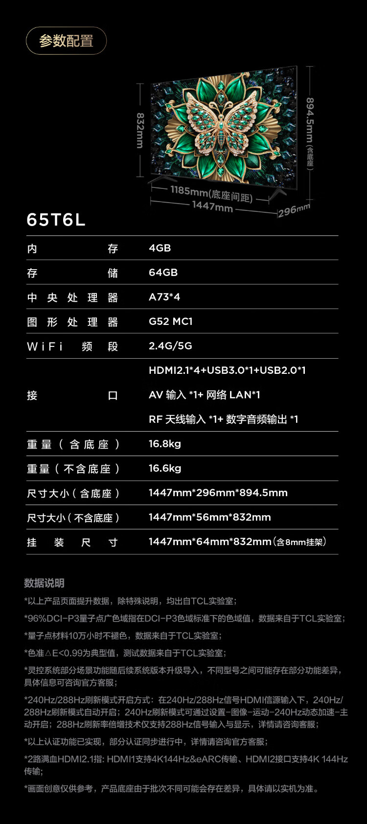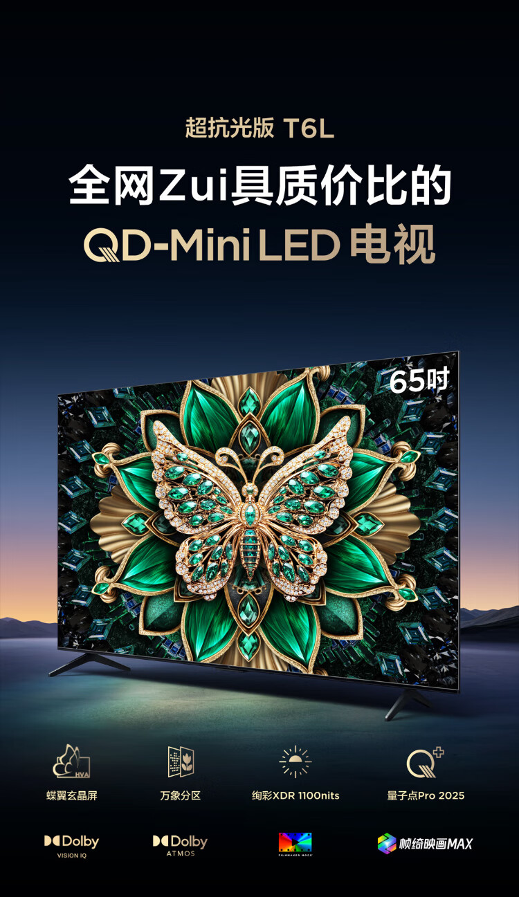 TCL TV 65T6L 65-inch QD-Mini LED Vientiane Partition Quantum Dot Colorful XDR 1100nits DeepSeek AI TV National Subsidy